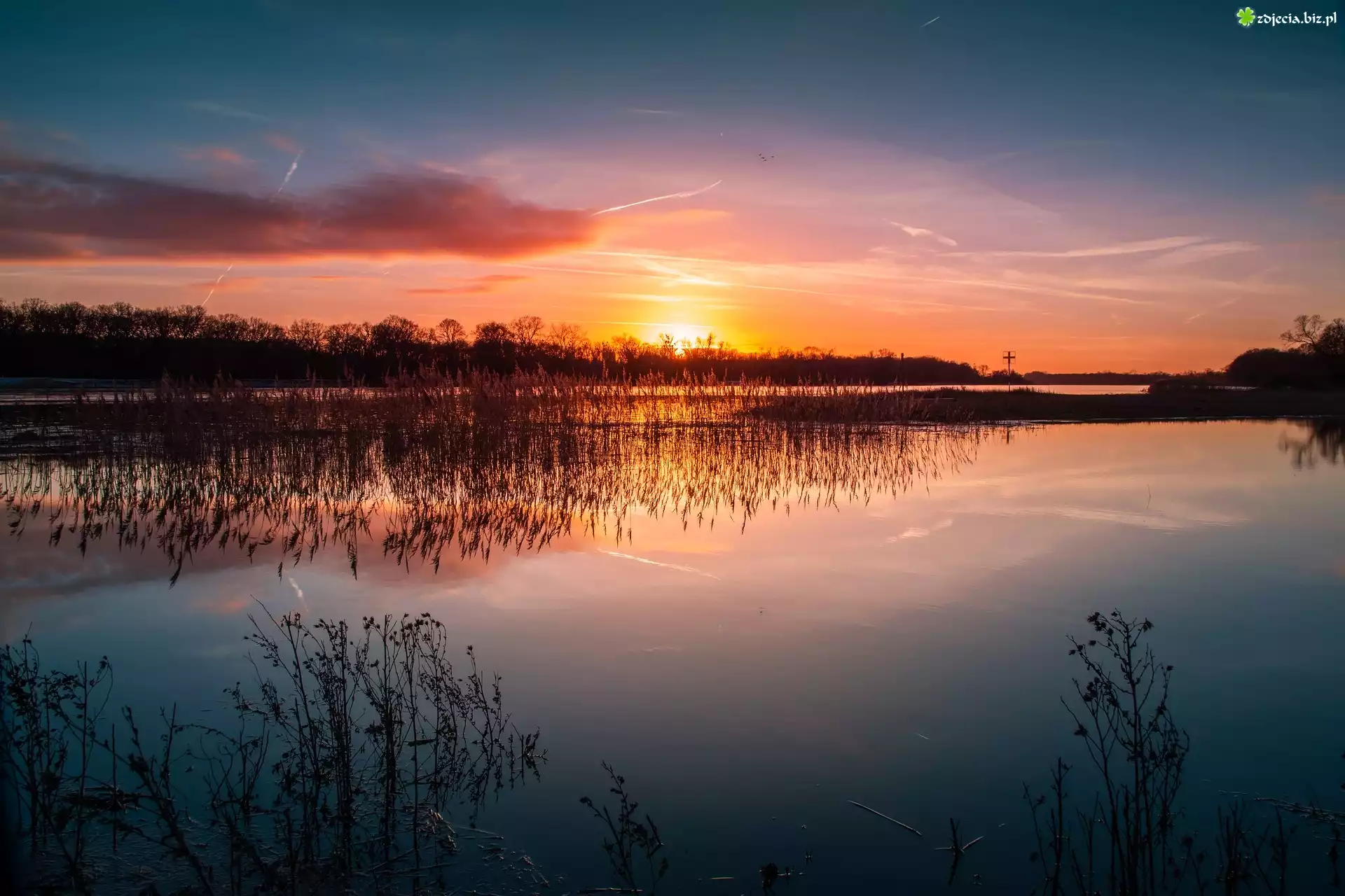 Zdjęcie Zachód słońca, Rzeka Łaba, Trawy, Niemcy