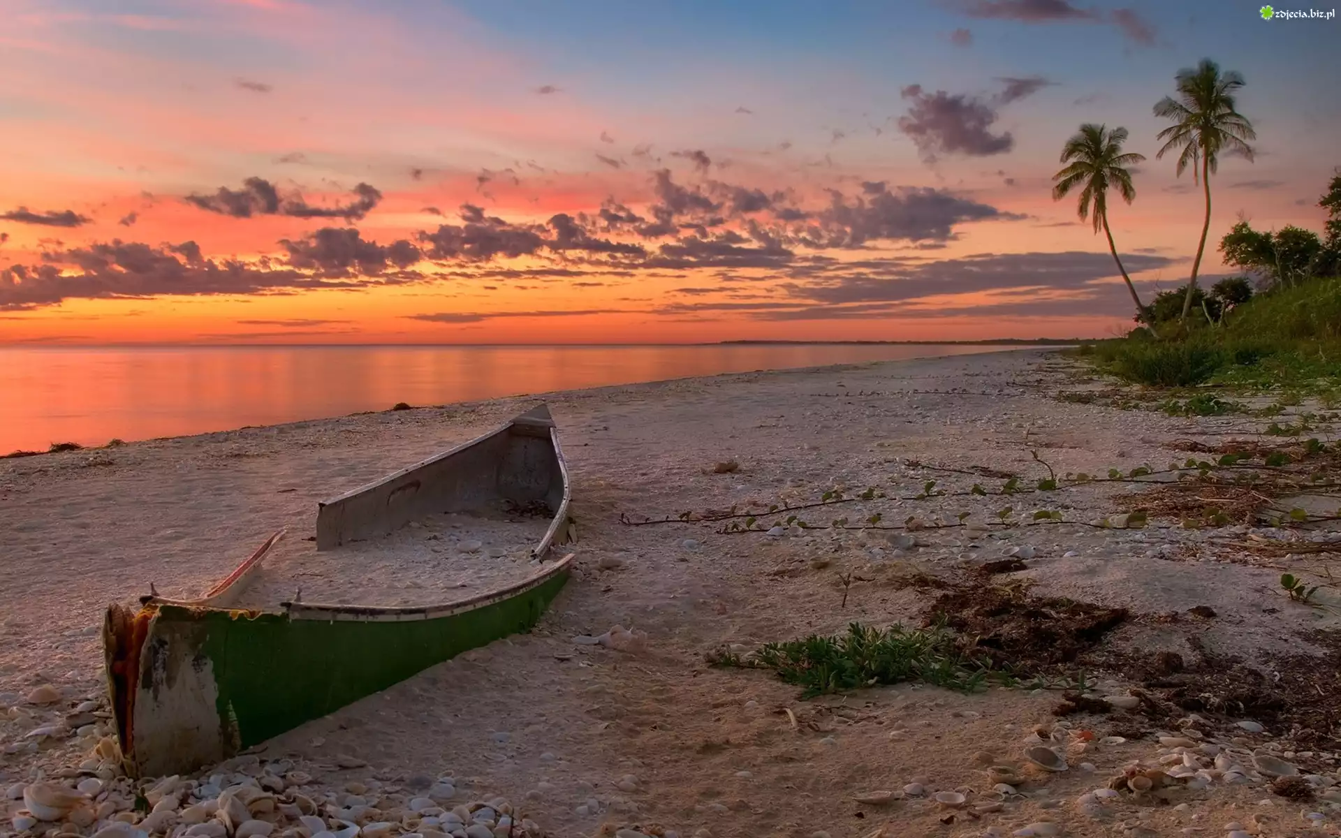Zdjęcie Zachód, Słońca, Morze, Plaża, Wrak, Łódki