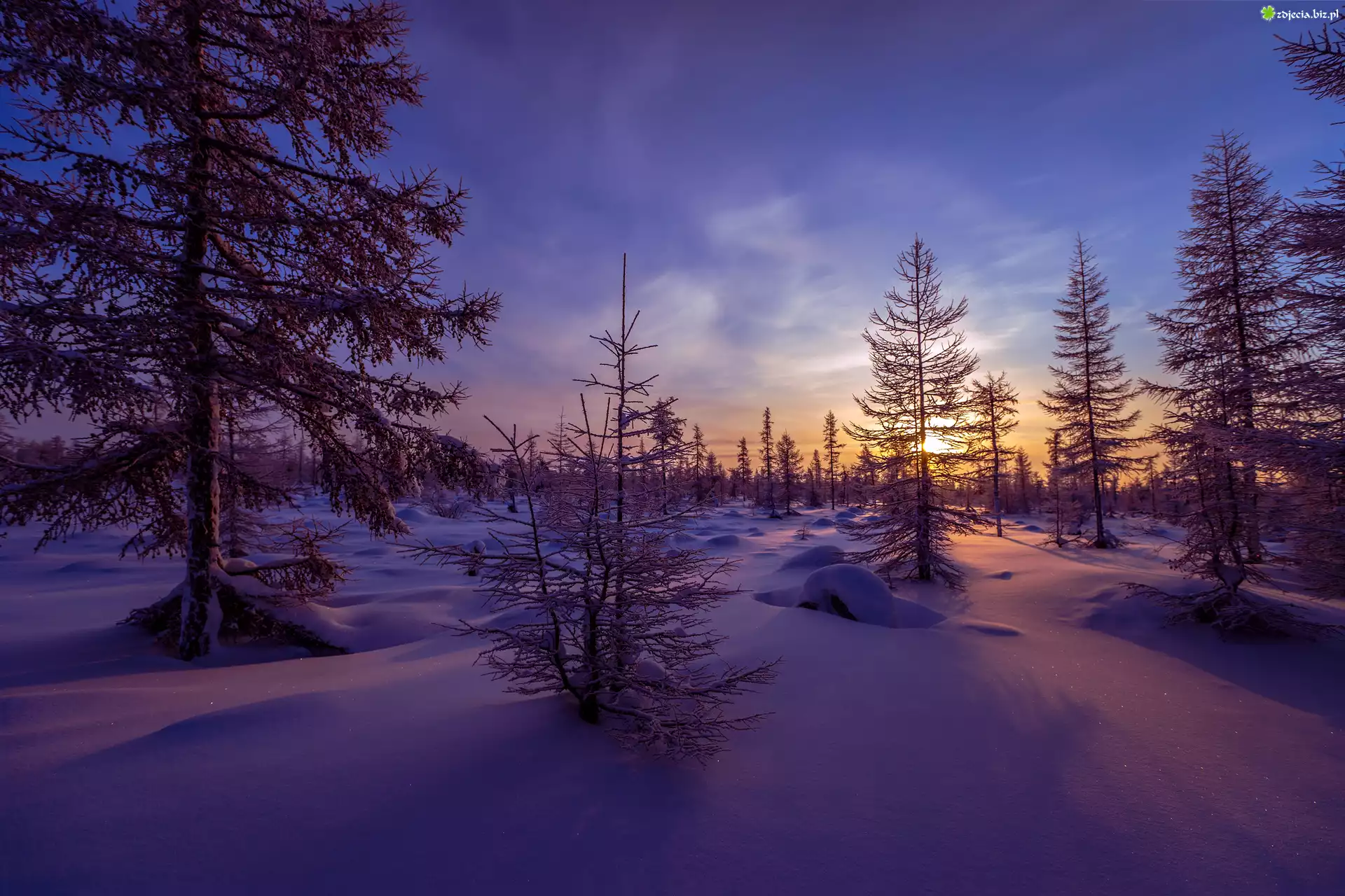 Zdjęcie, Zachód słońca, Zima, Drzewa