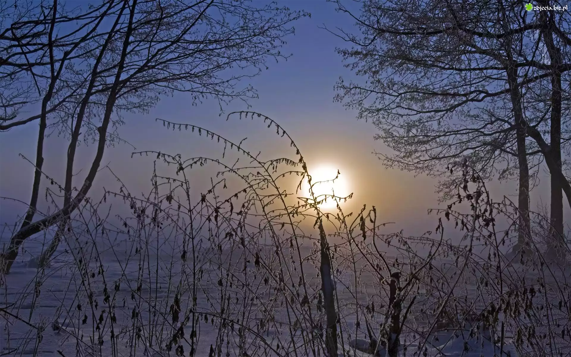 Zdjęcie Zachód, Słońca, Zima, Drzewa