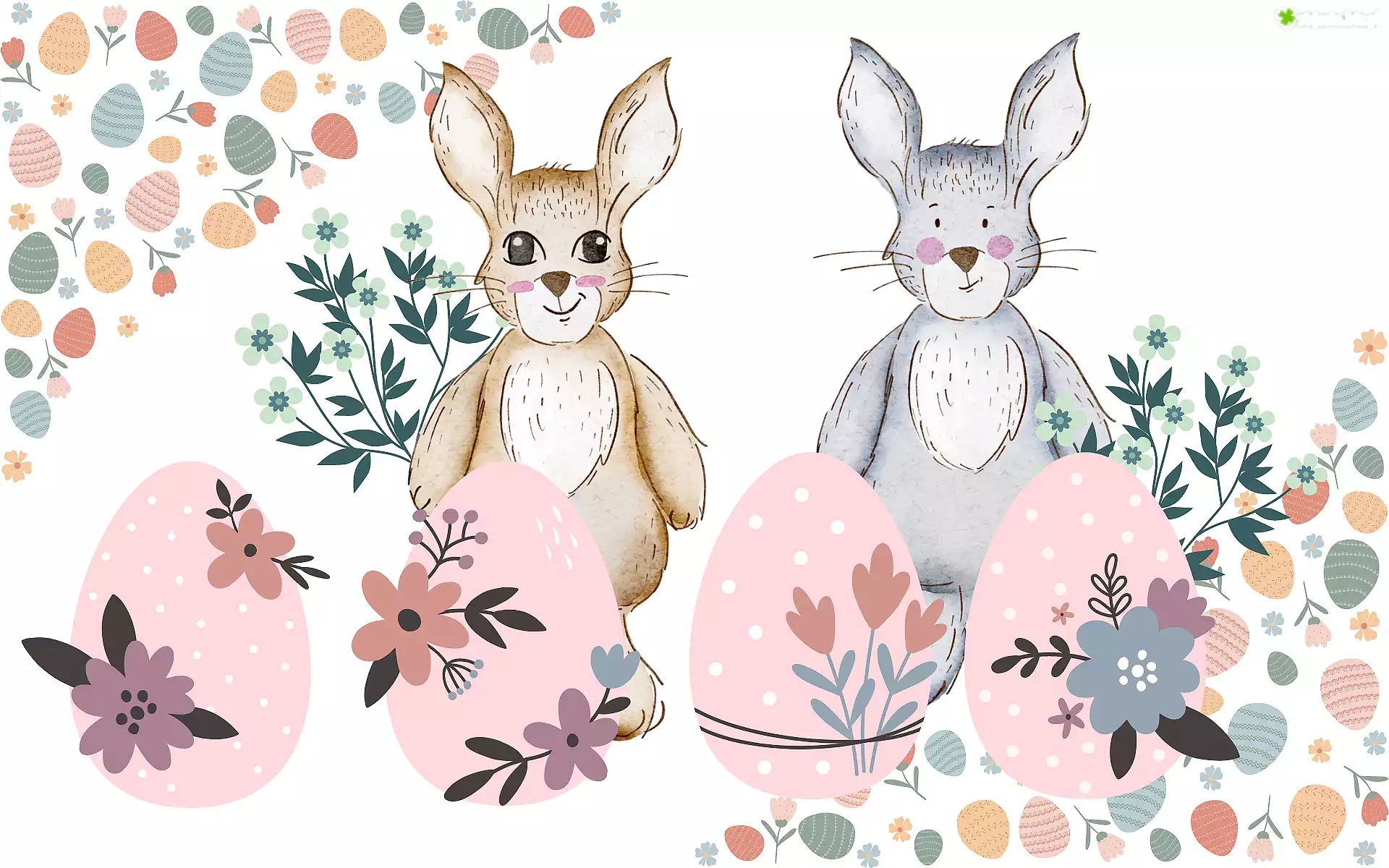 Zdjęcie Wielkanoc, Zające, Pisanki, Kwiaty, Grafika