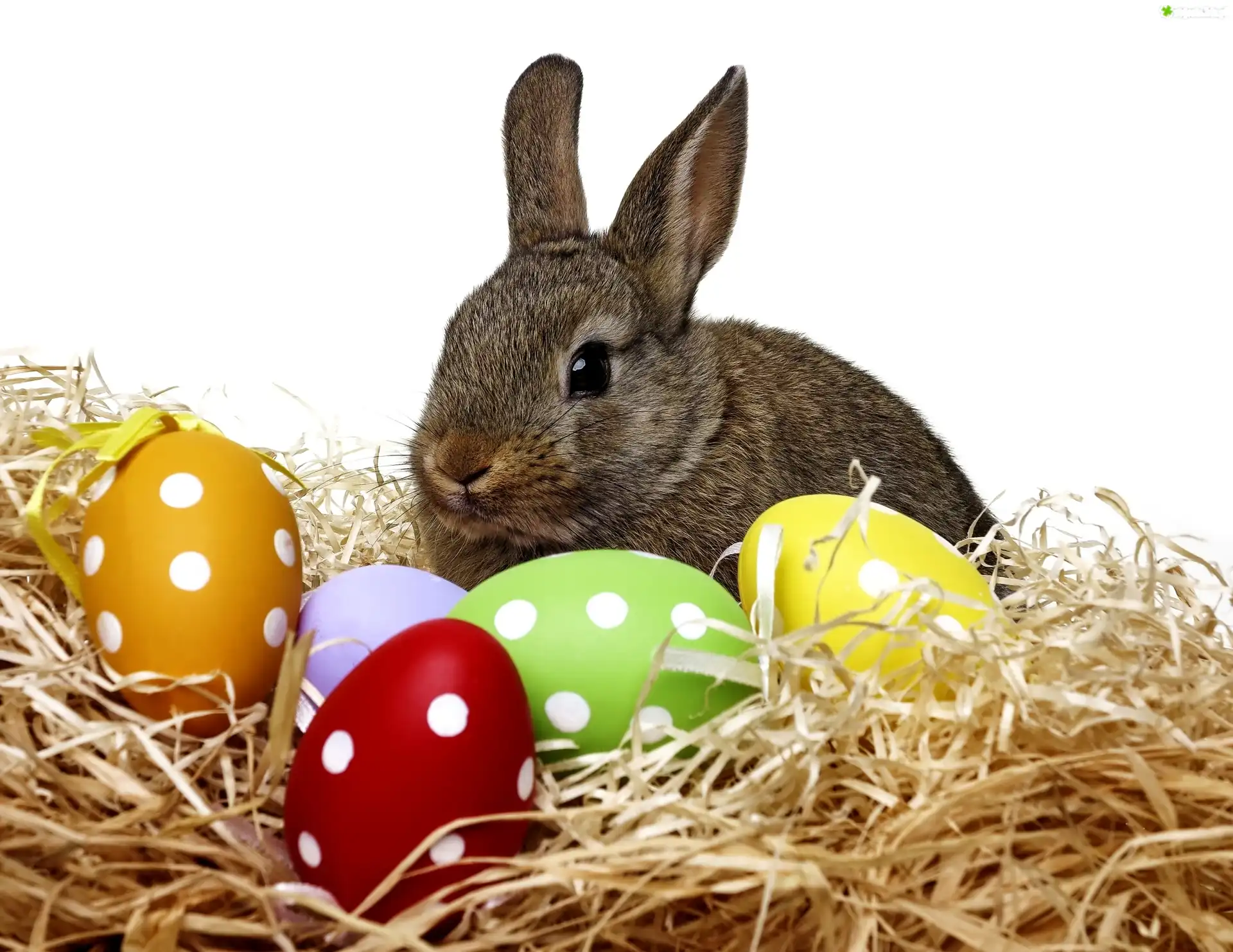 Zdjęcie, Zajączek, Jajka, Sianko, Wielkanoc