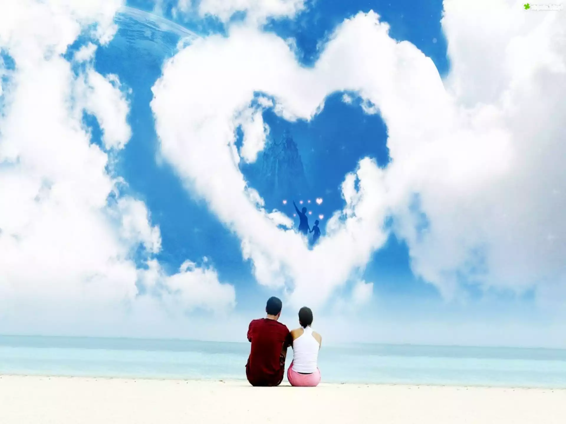 Zdjęcie Zakochana, Para, Niebo, Chmury, Kształt, Serca