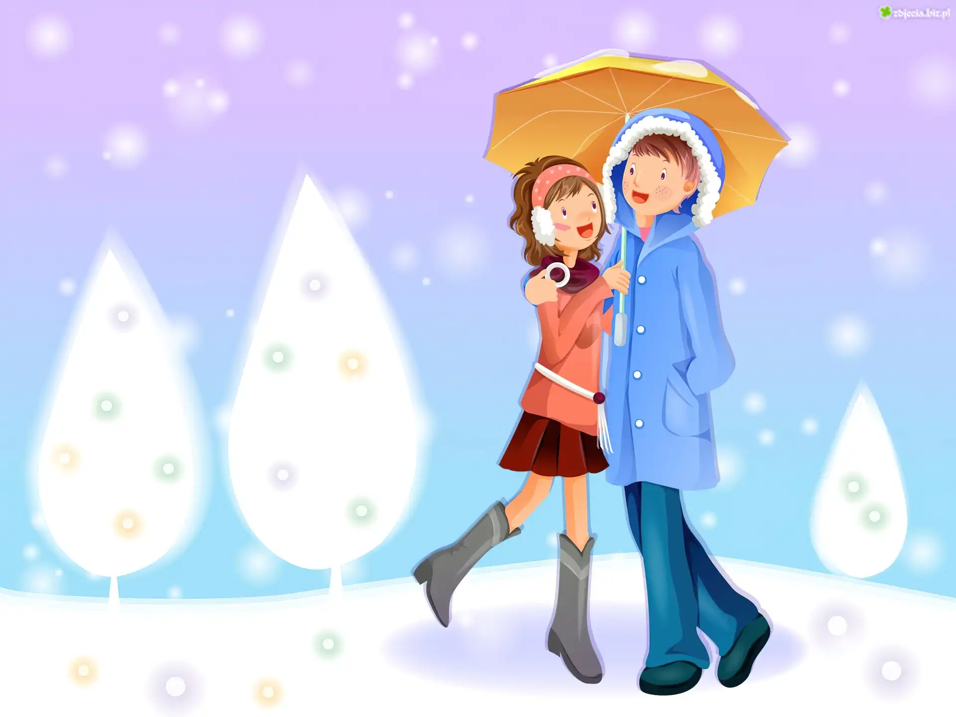 Zdjęcie Zakochana, Para, Zima, Śnieg, Grafika