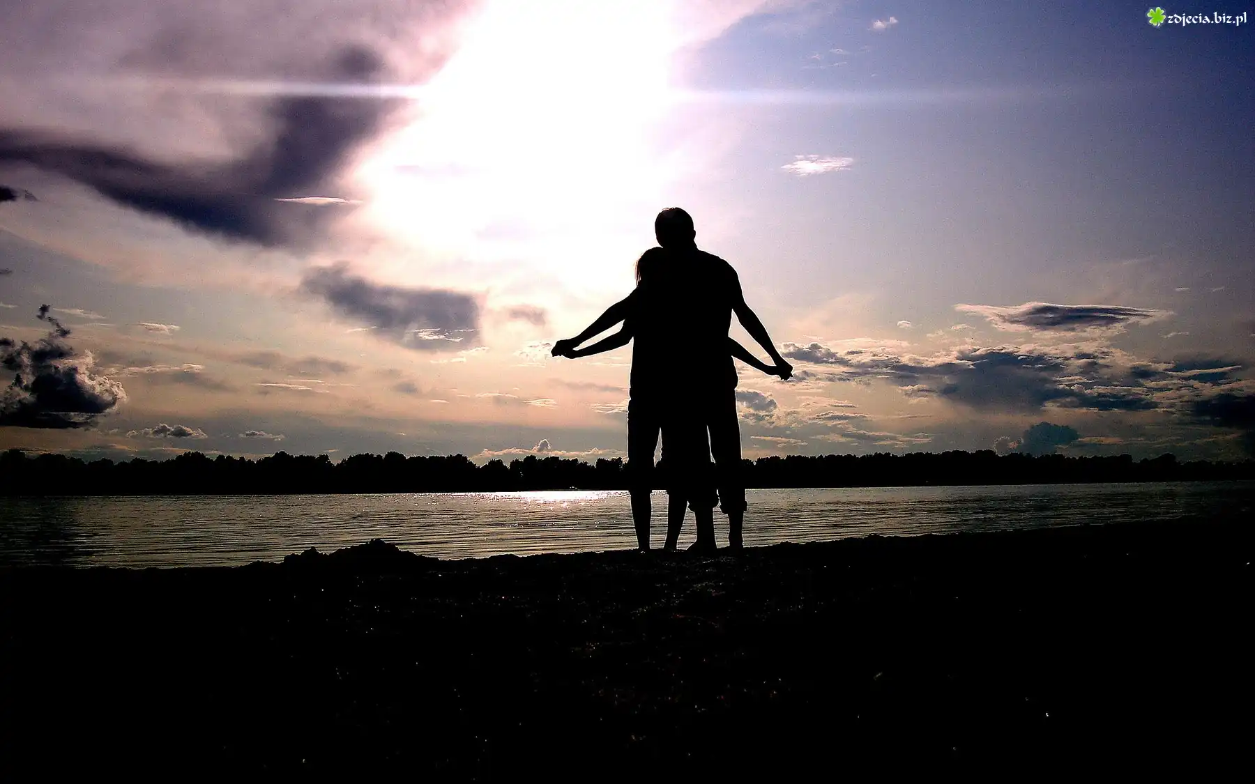 Zdjęcie Zakochani, Postaci, Jezioro, Zachód, Słońca