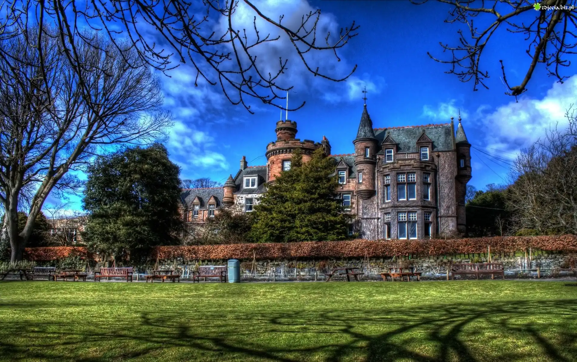 Zdjęcie, Dom, Dworek, Wieżyczki, Murek