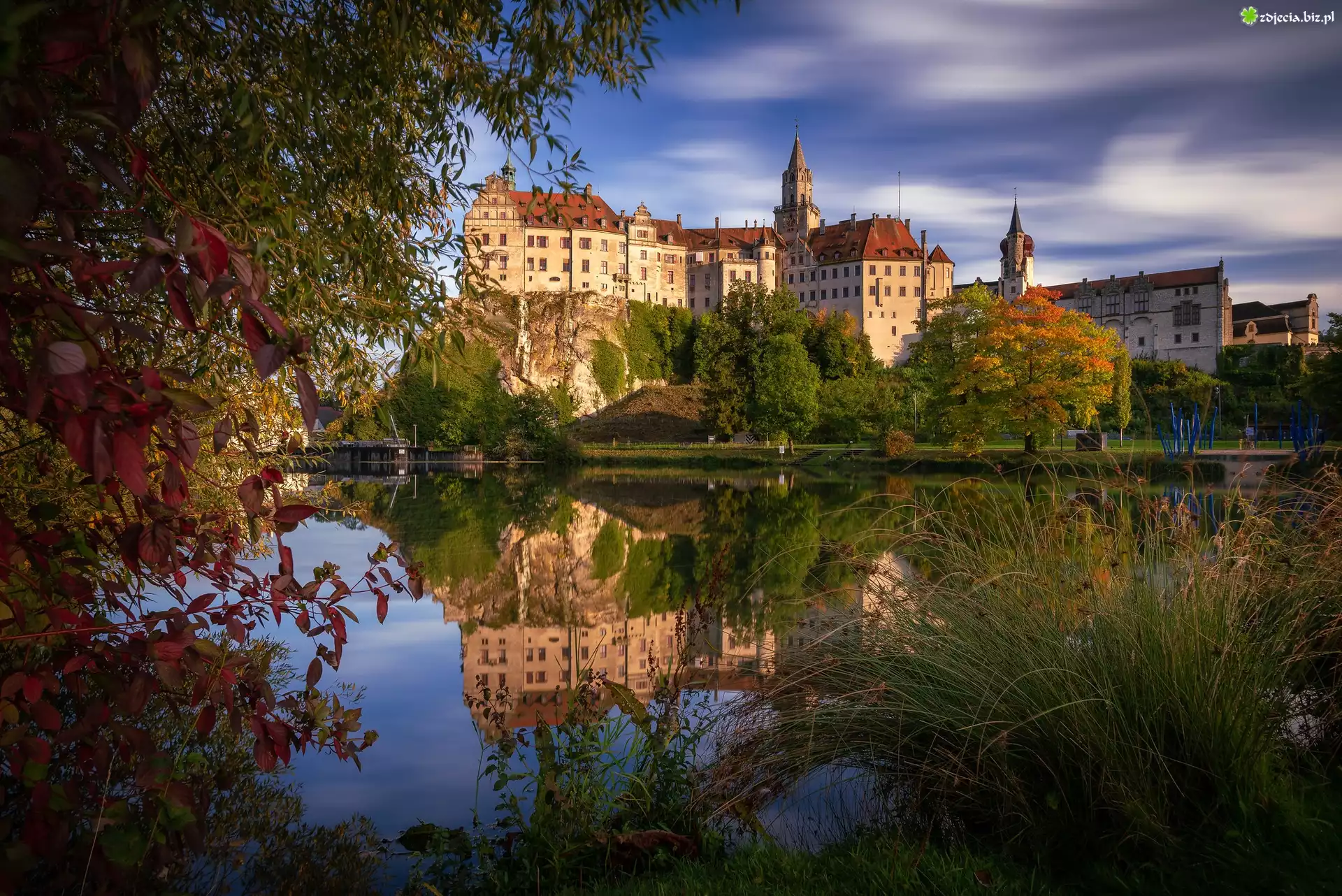 Zdjęcie Zamek Sigmaringen, Rzeka, Dunaj, Drzewa, Zieleń, Badenia-Wirtembergia, Niemcy