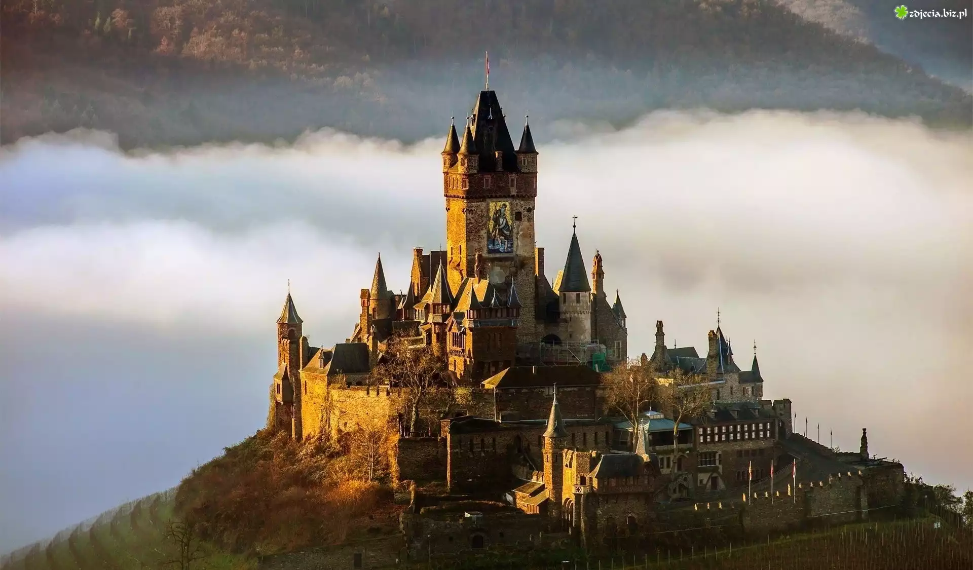 Zdjęcie Zamek Reichsburg, Miasto Cochem, Niemcy, Mgła