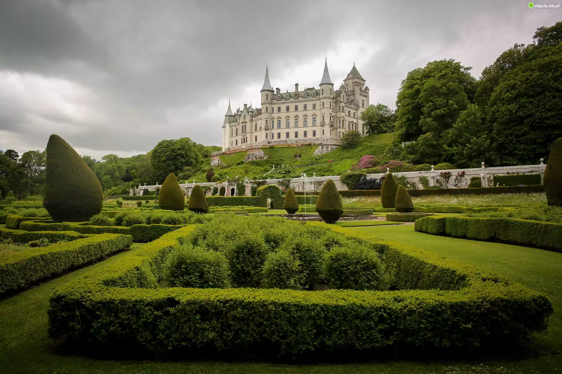 Zdjęcie, Szkocja, Zamek Dunrobin, Wzgórze, Ogród