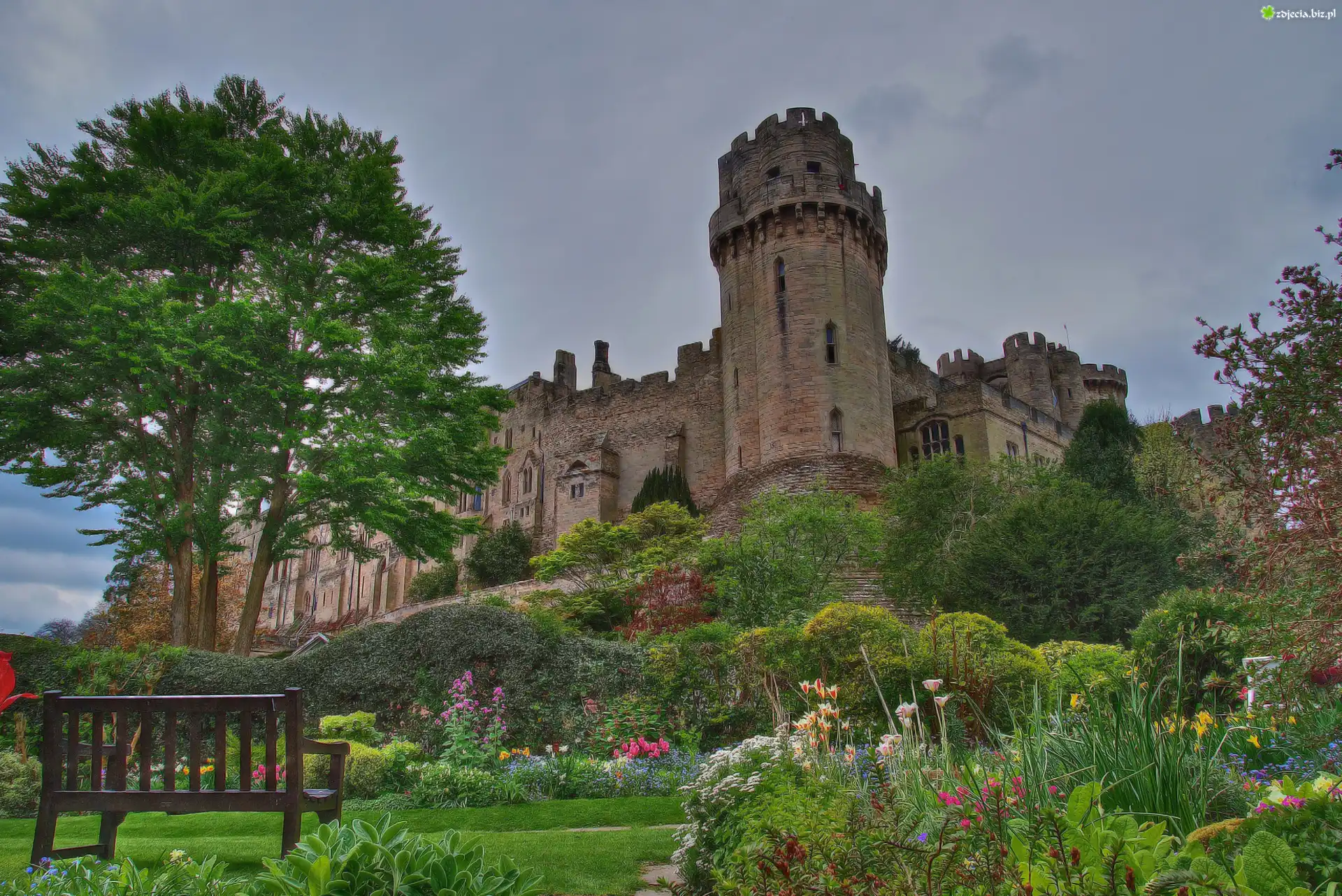 Zdjęcie Zamek w Warwick, Anglia, Ławka, Ogród