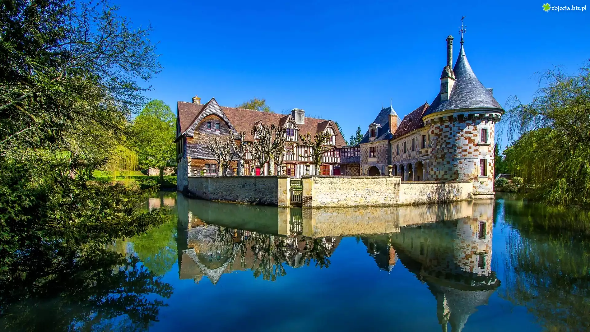 Zdjęcie Zamek, Wieża, Staw, Drzewa