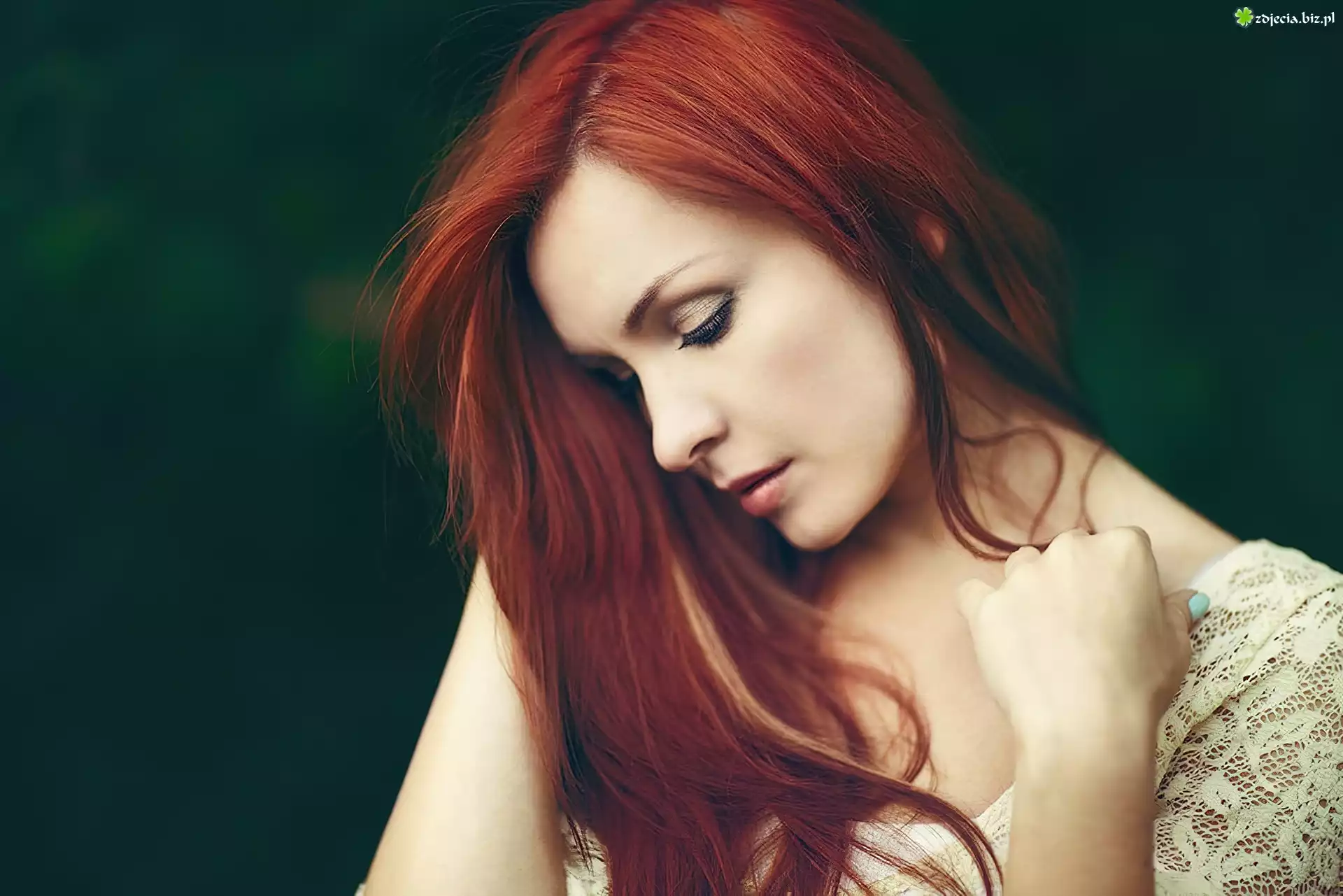 Zdjęcie Zamyślona, Kobieta, Rude, Włosy