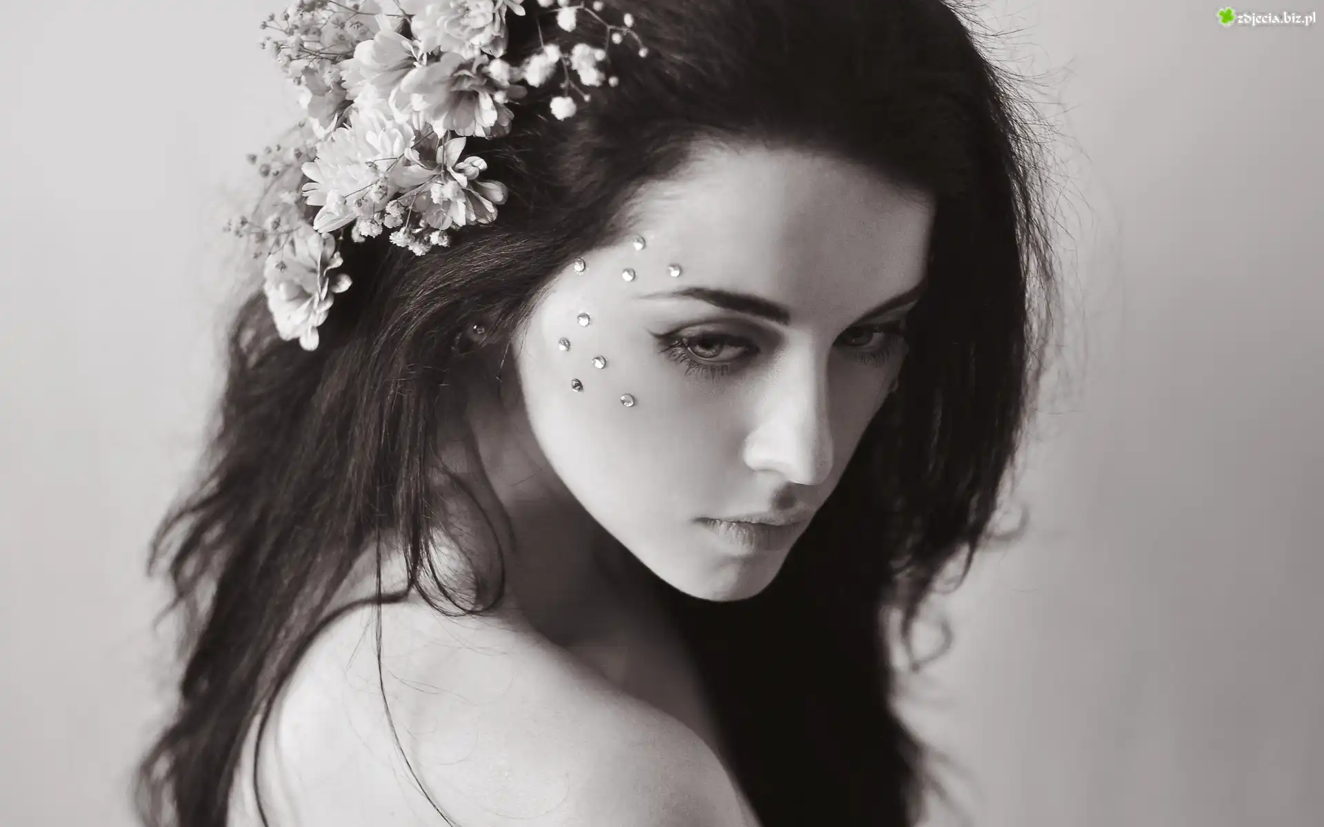 Zdjęcie Zamyślona, Smutna, Kobieta, Skala szarości