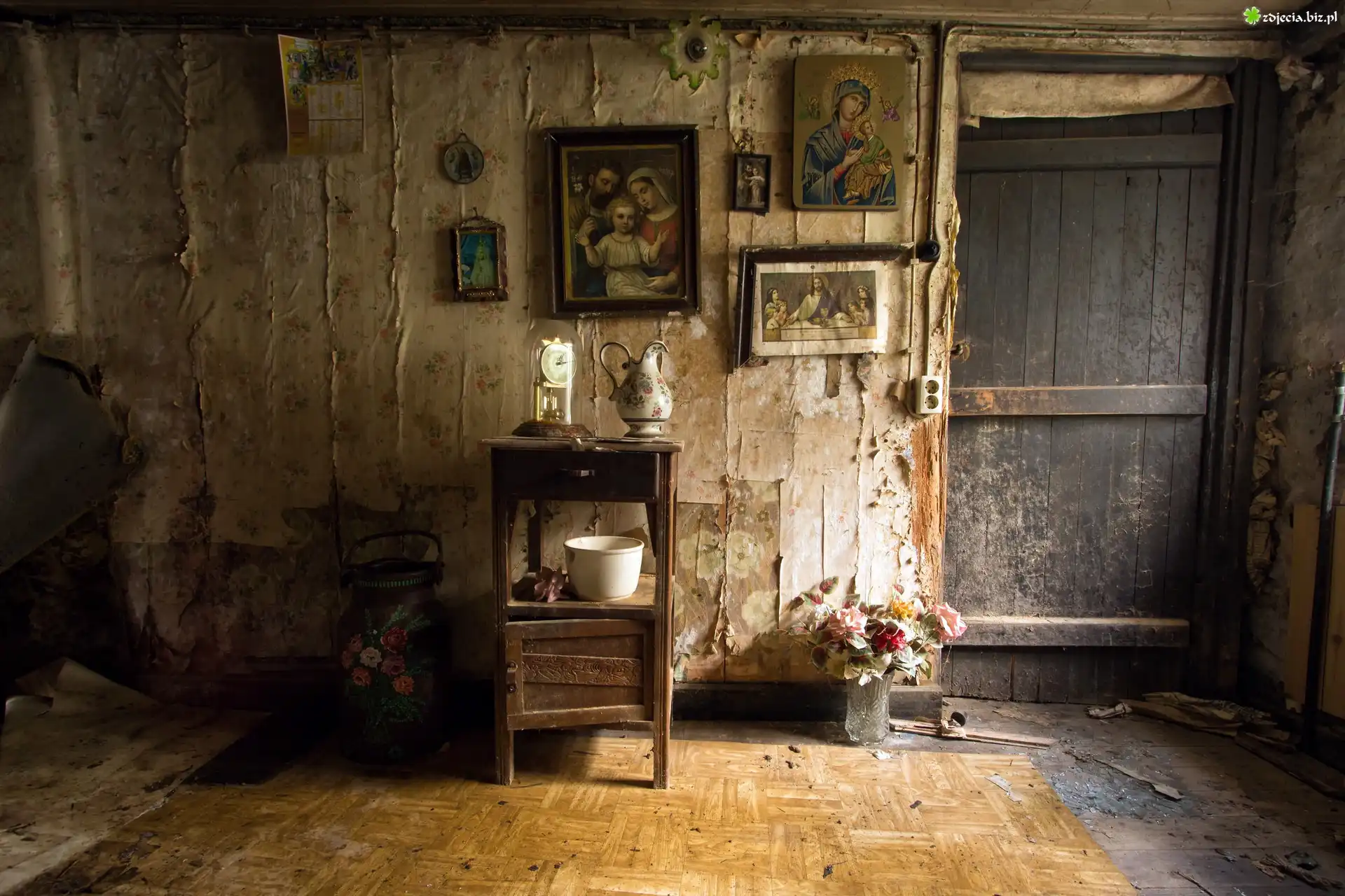Zdjęcie Zaniedbany, Pokój, Obrazy, Naczynia, Drzwi