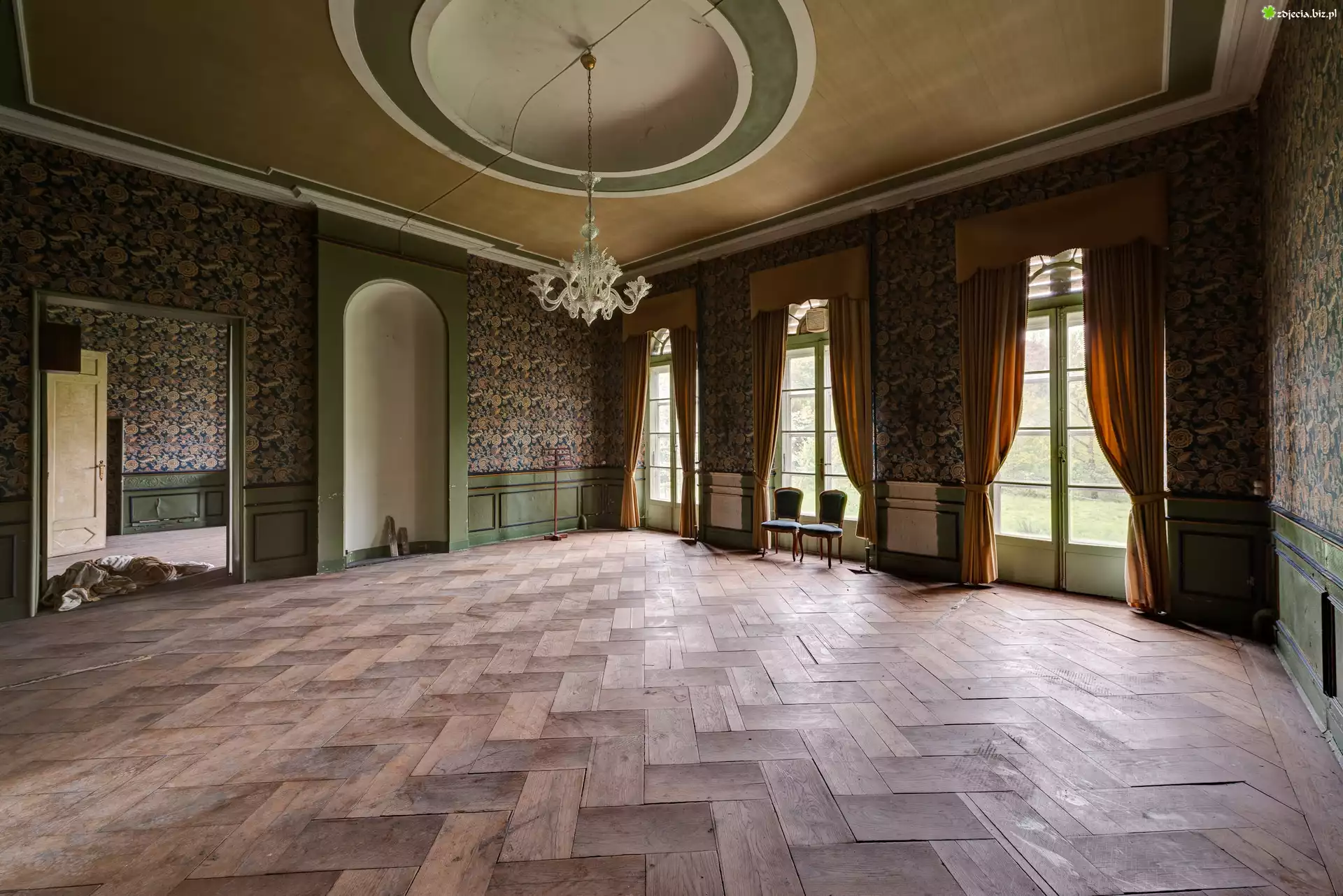 Zdjęcie Zaniedbany, Opuszczony, Pokój, Zasłony, Żyrandol