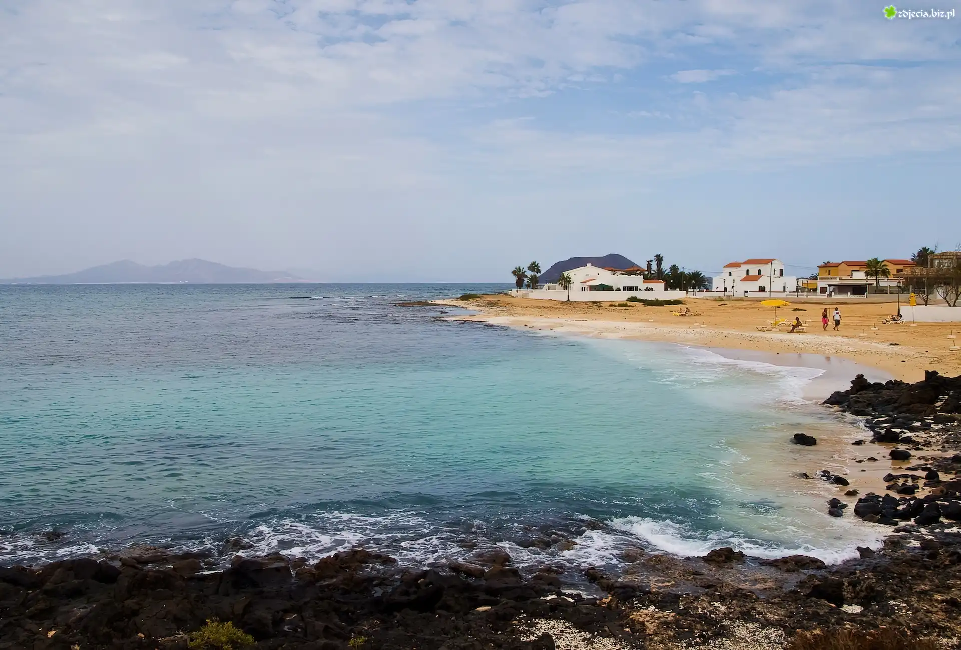 Zdjęcie Zatoka, Skały, Plaża, Domki