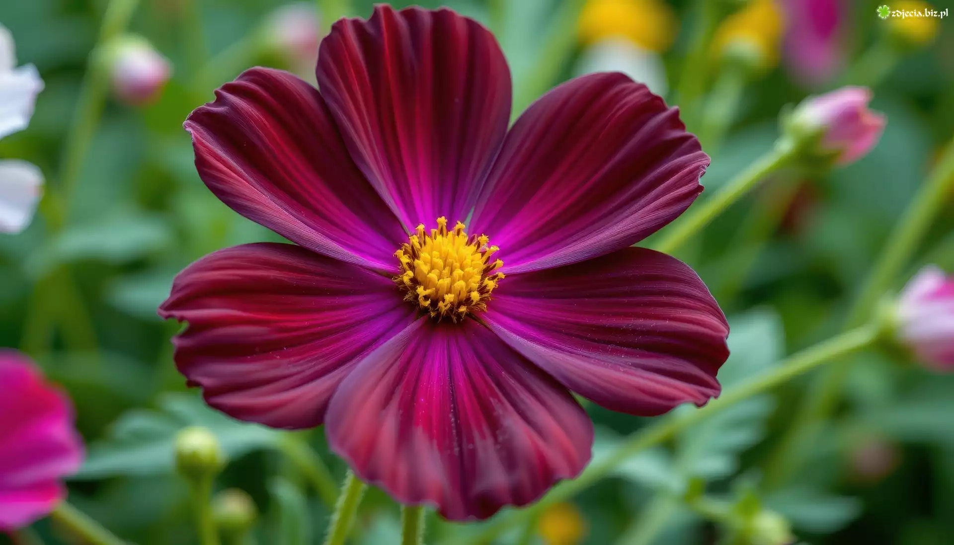 Zdjęcie Kwiat, Ciemnoczerwony, Kosmea, Zbliżenie
