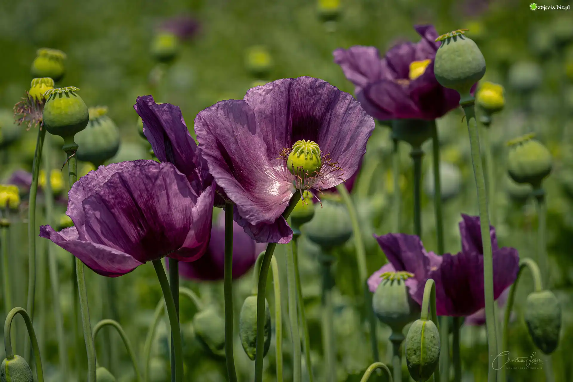 Zdjęcie, Kwiaty, Fioletowe, Maki, Zbliżenie