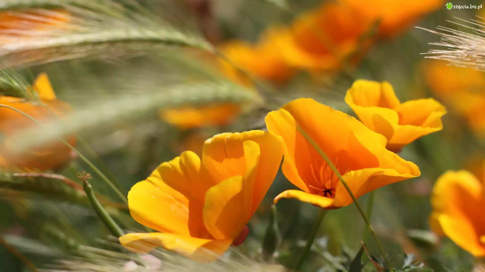 Zdjęcie Żółte, Maki, Zboże, Kłosy