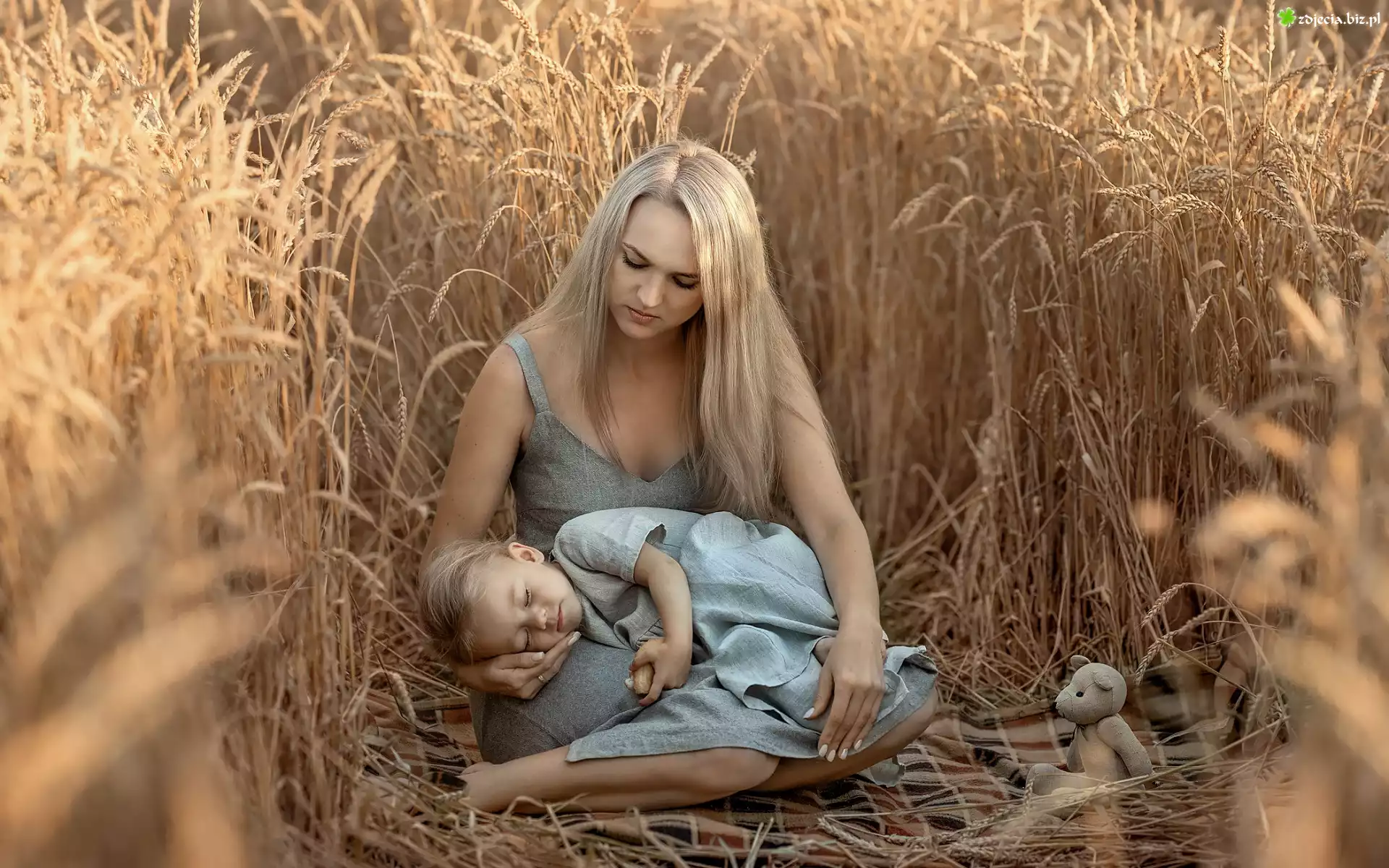 Zdjęcie, Pole, Zboże, Kobieta, Dziewczynka, Dziecko, Matka, Córka
