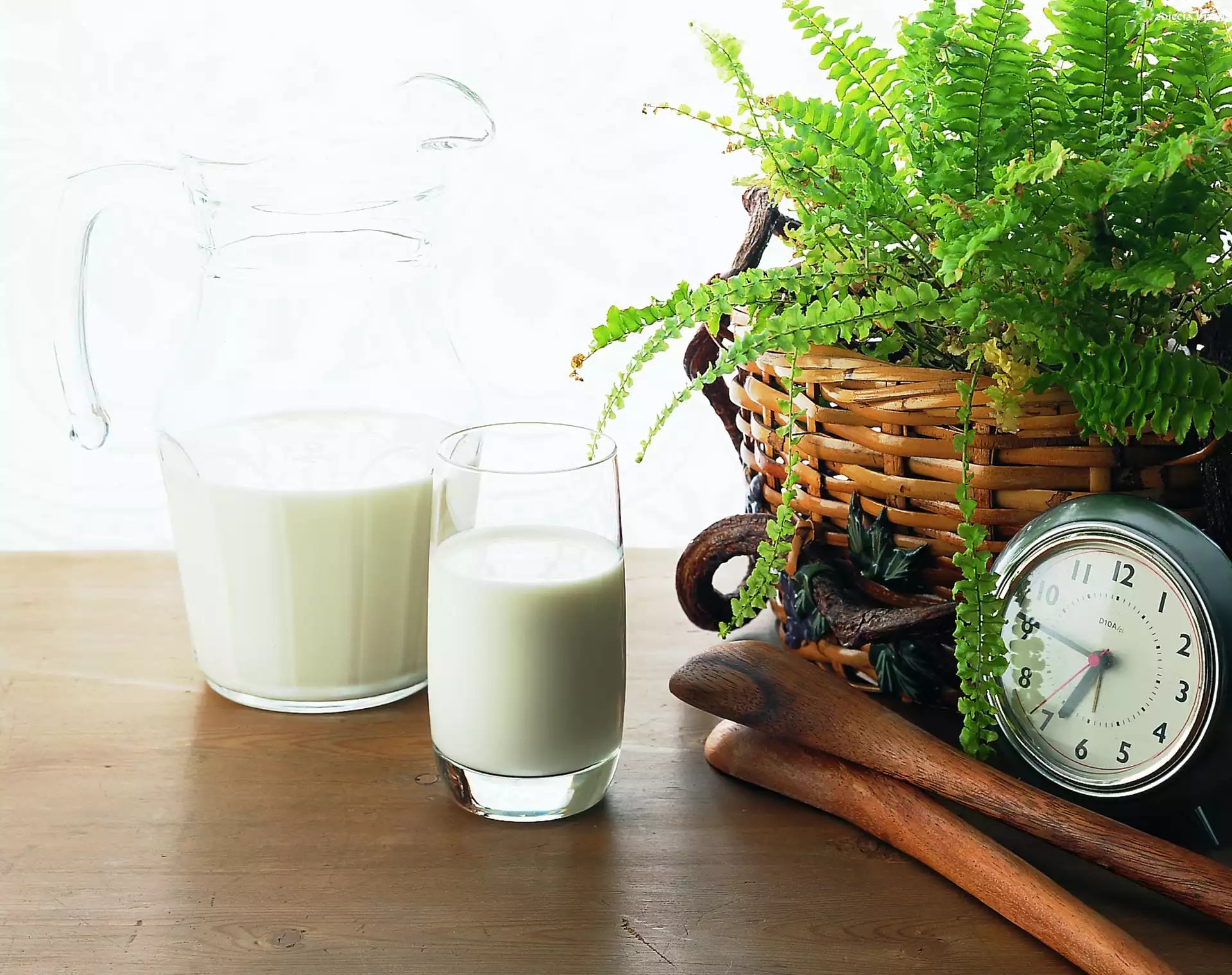 Zdjęcie, Zegarek, Paprotka, Wiklinowy, Koszyk, Mleko, Szkło