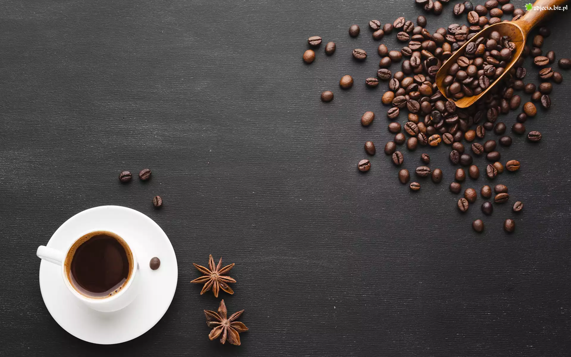 Zdjęcie Kawa, Ziarna, Filiżanka, Talerz, Anyż