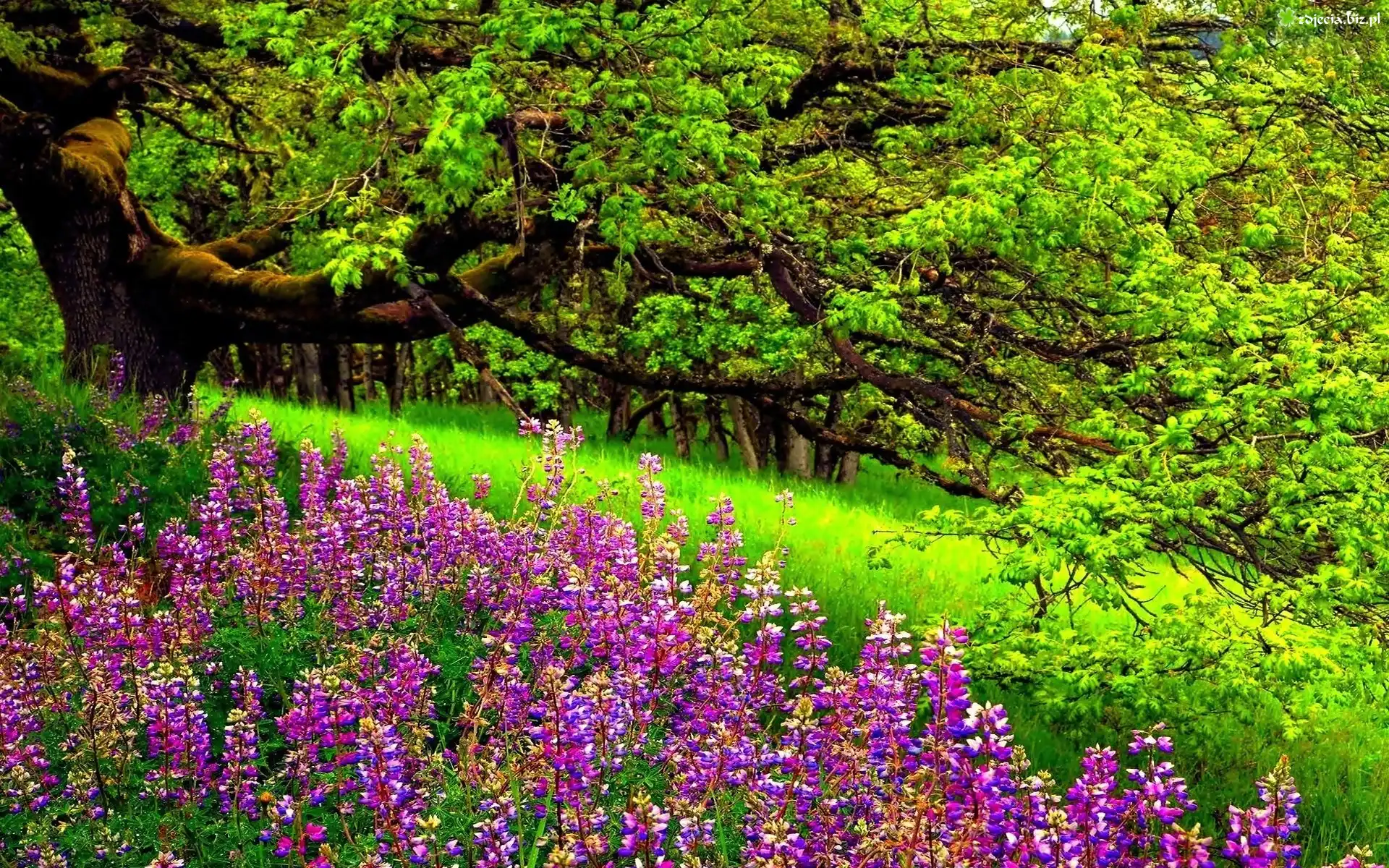Zdjęcie Zielona, Trawa, Drzewa, Park, Wiosna