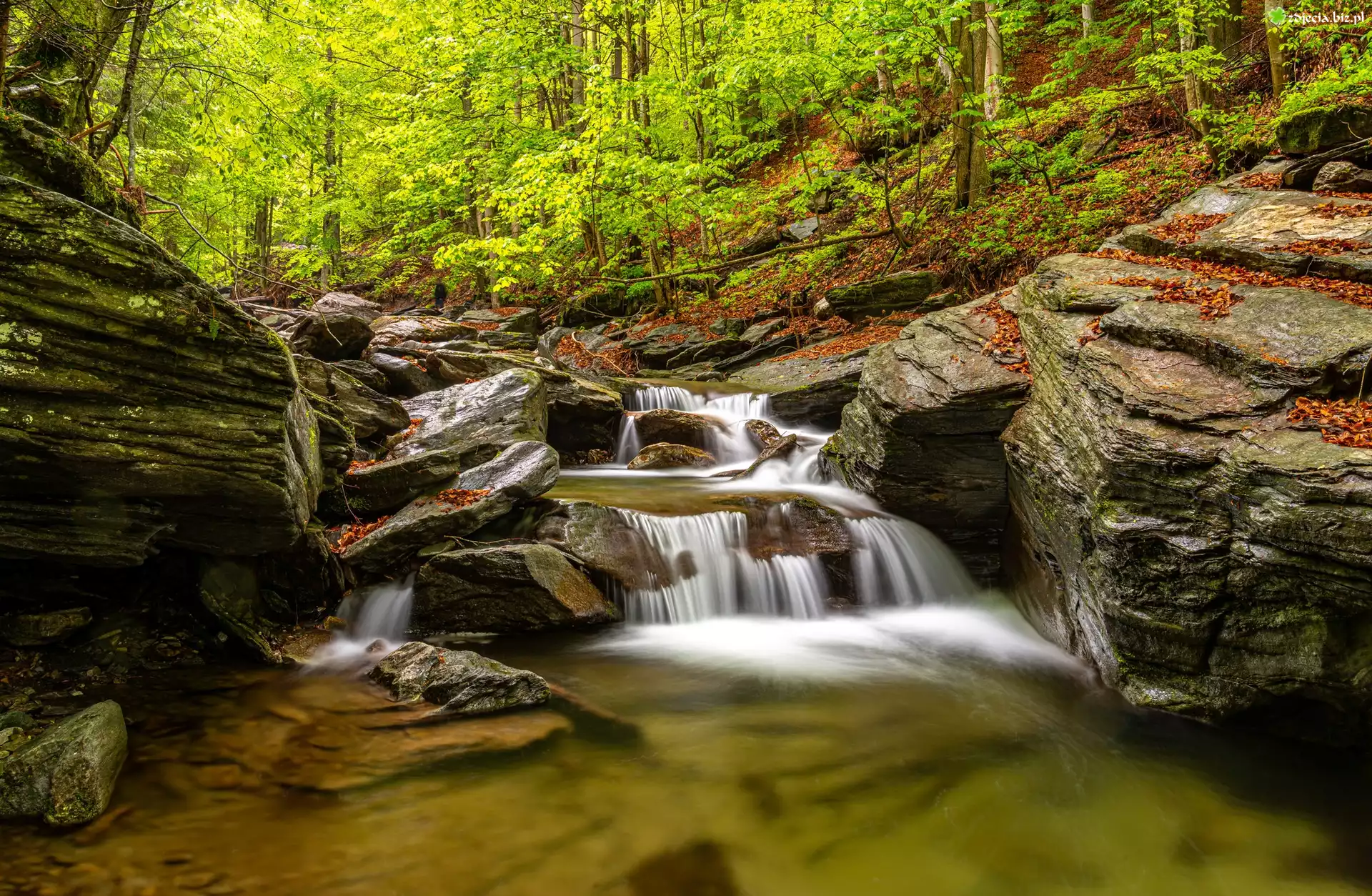 Zdjęcie Las, Zielone, Drzewa, Rzeka, Skały