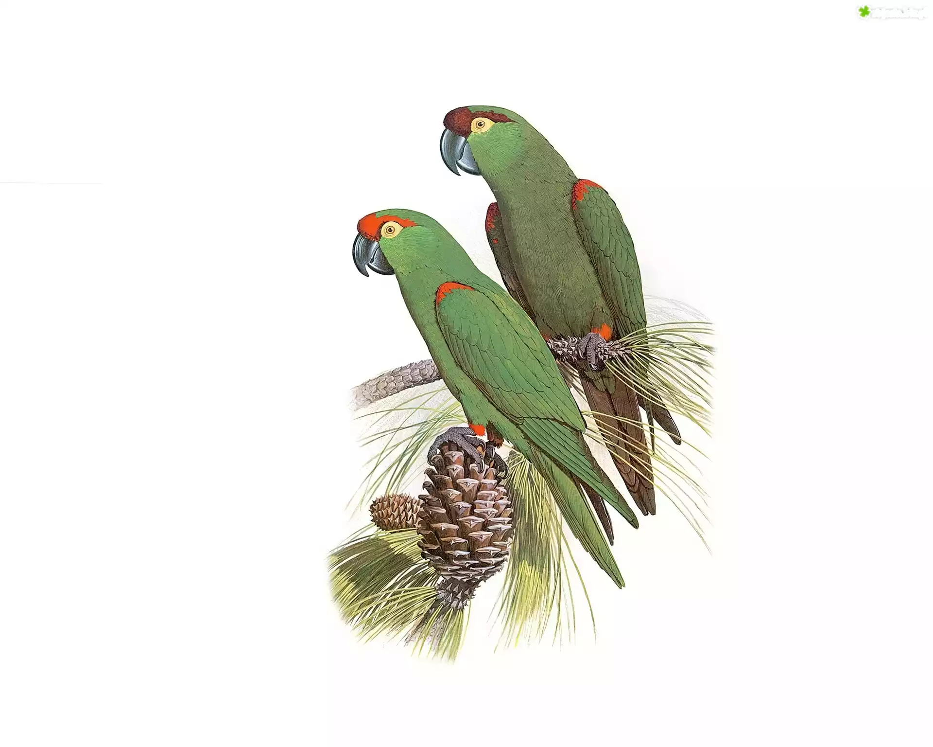 Zdjęcie, Zielone, Papugi, Szyszka, Edward Lear