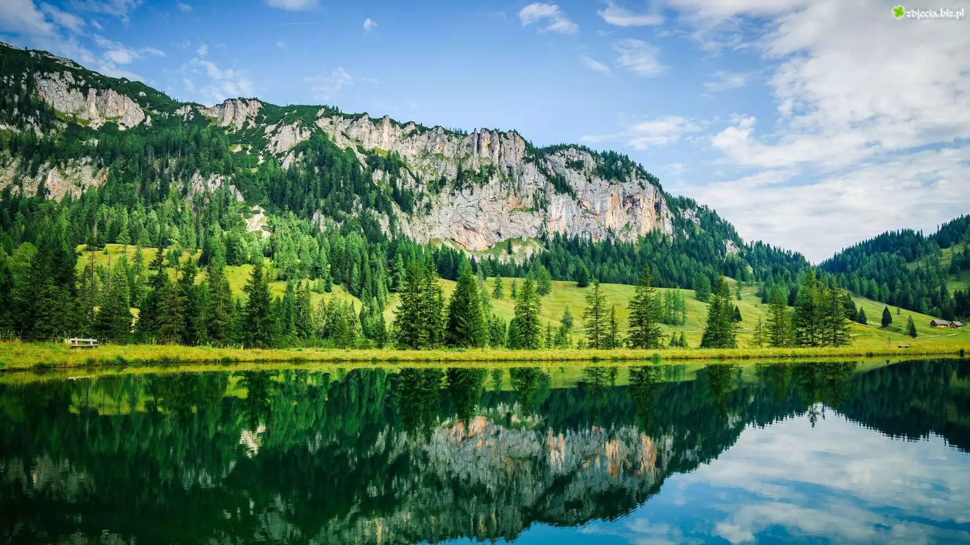 Zdjęcie Jezioro, Góra, Góry, Zielone, Drzewa, Las, Odbicie