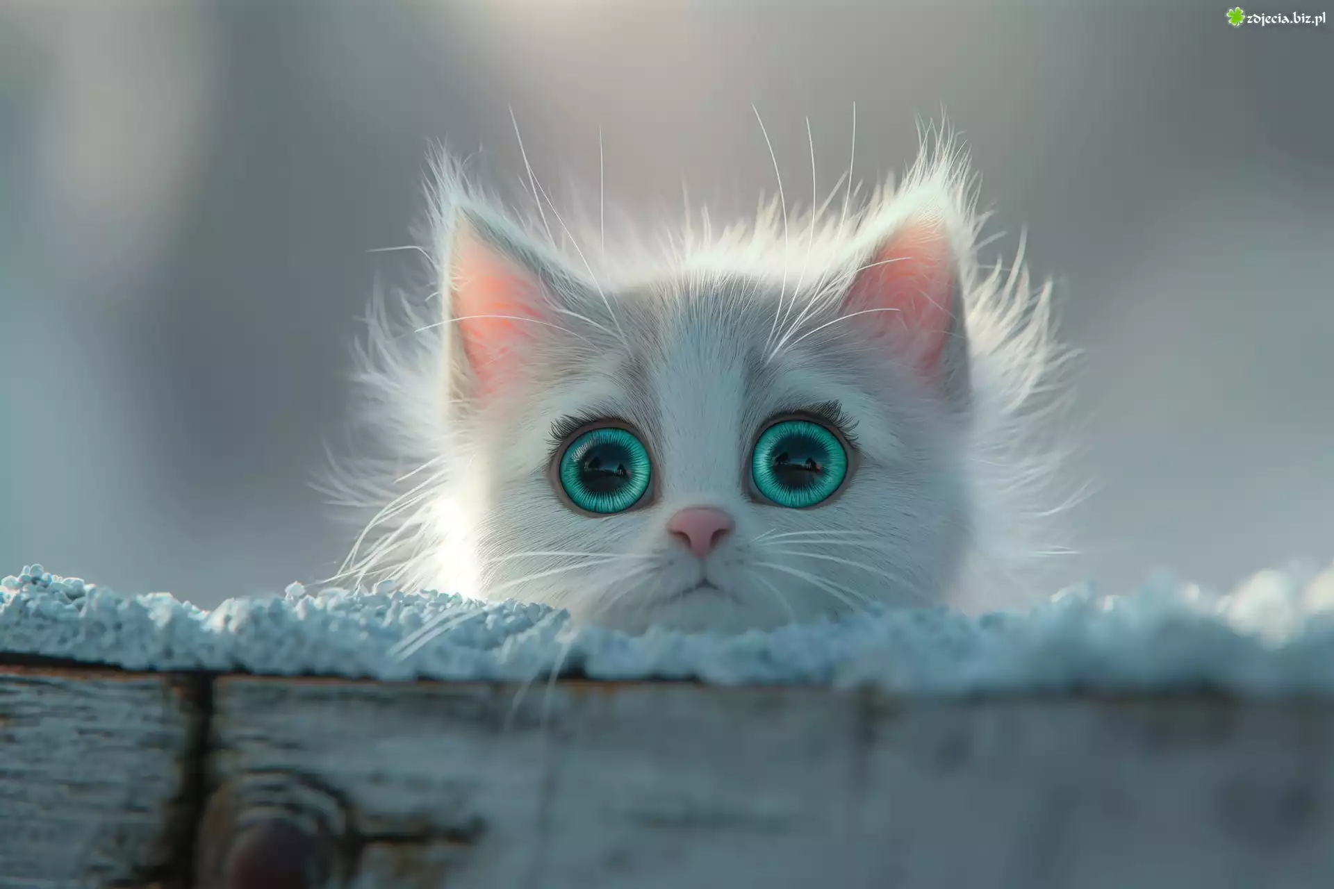 Zdjęcie Mały, Biały, Kot, Zielone, Oczy, Grafika