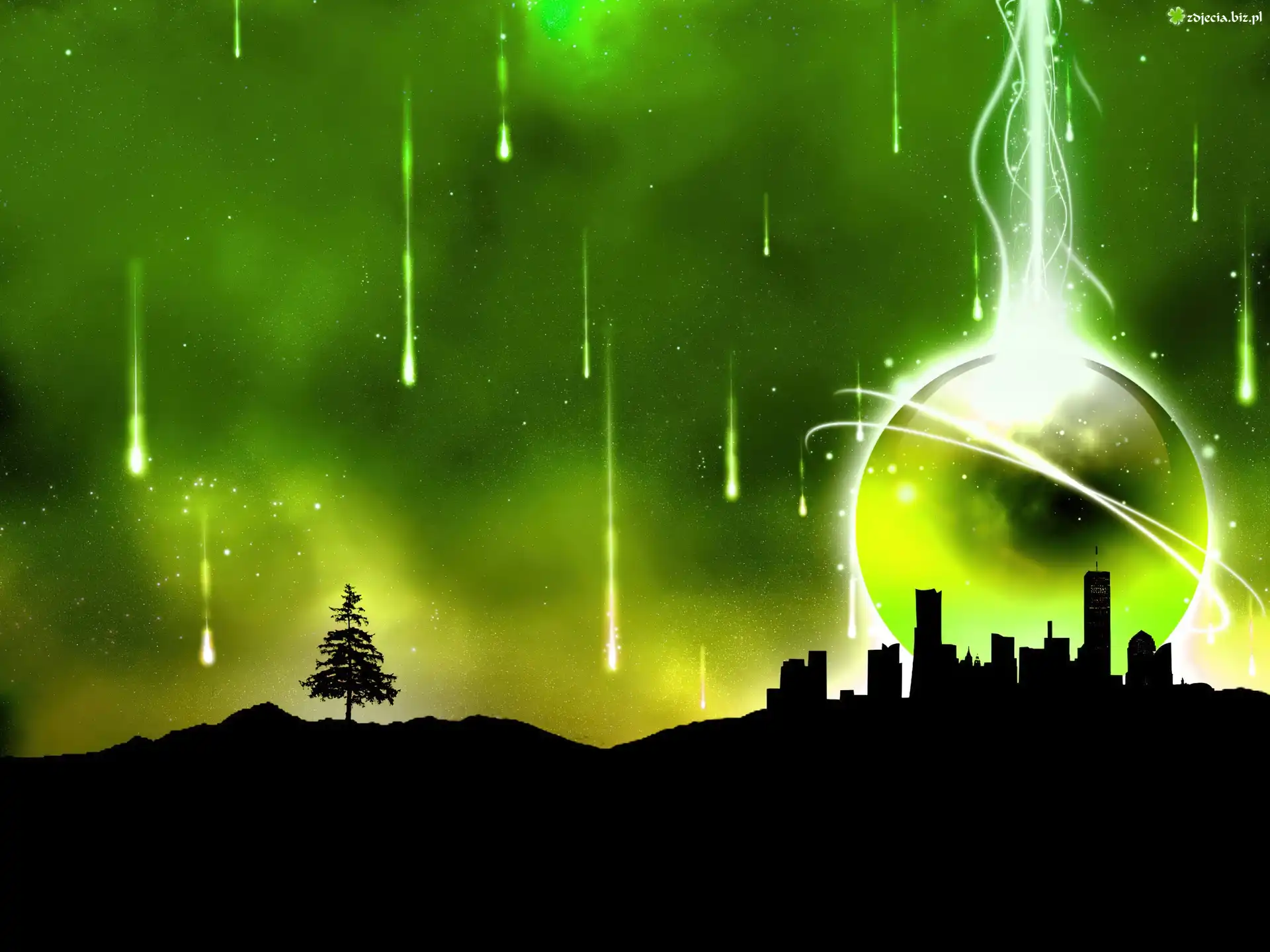 Zdjęcie Zielony, Krajobraz, Spadające, Gwiazdy