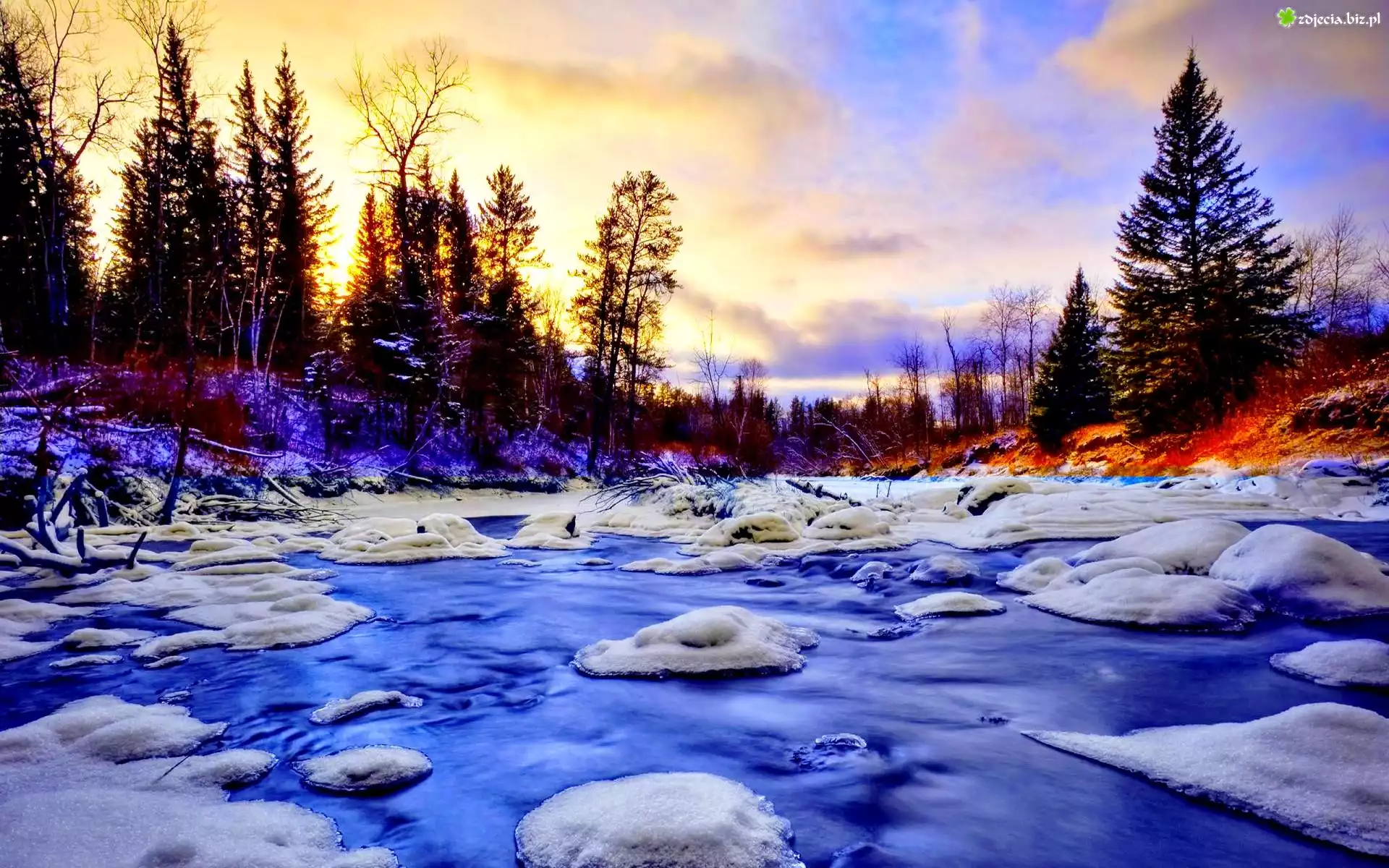Zdjęcie Choinki, Zima, Rzeka
