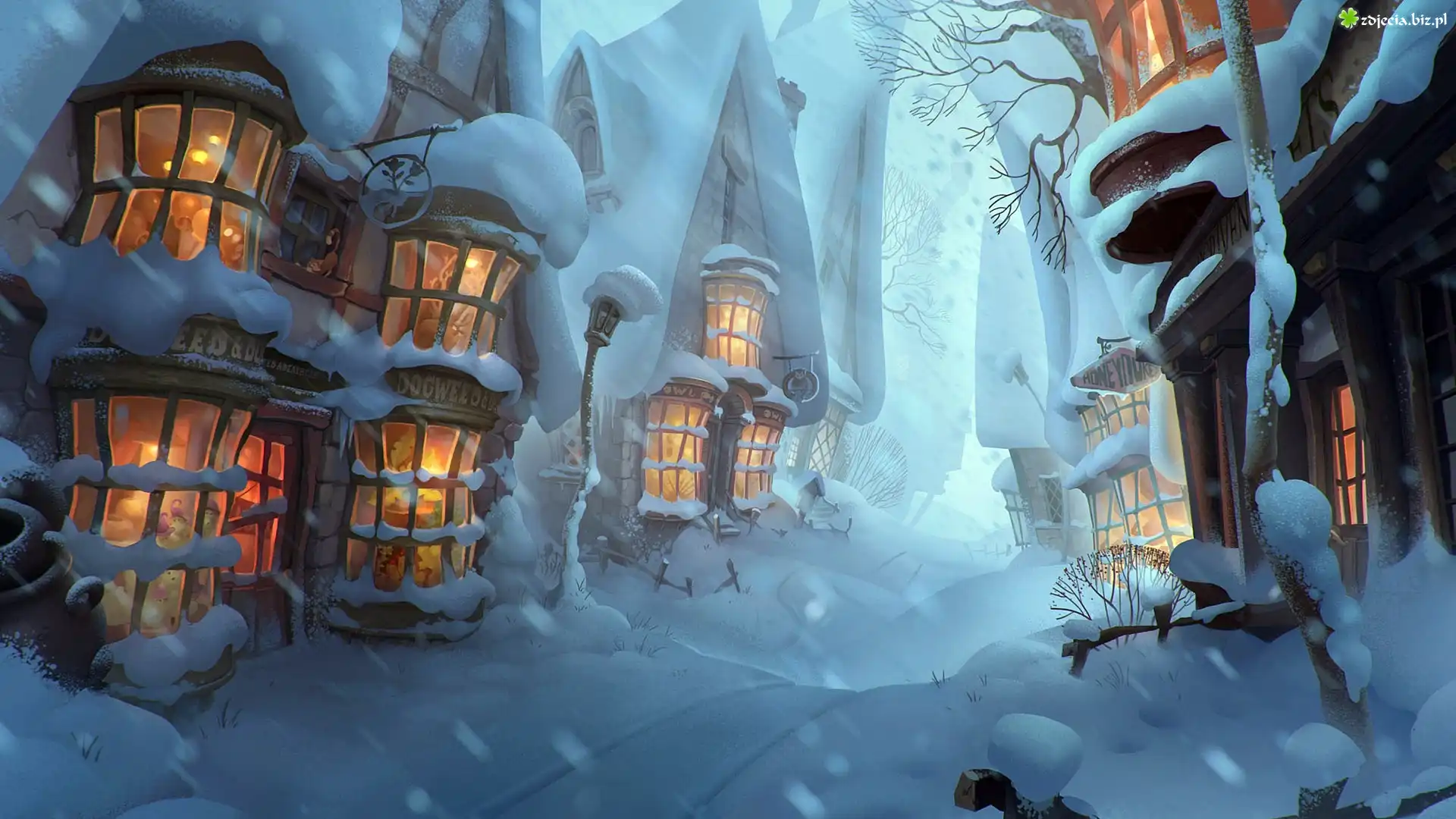 Zdjęcie Zima, Śnieg, Domy, Digital Art