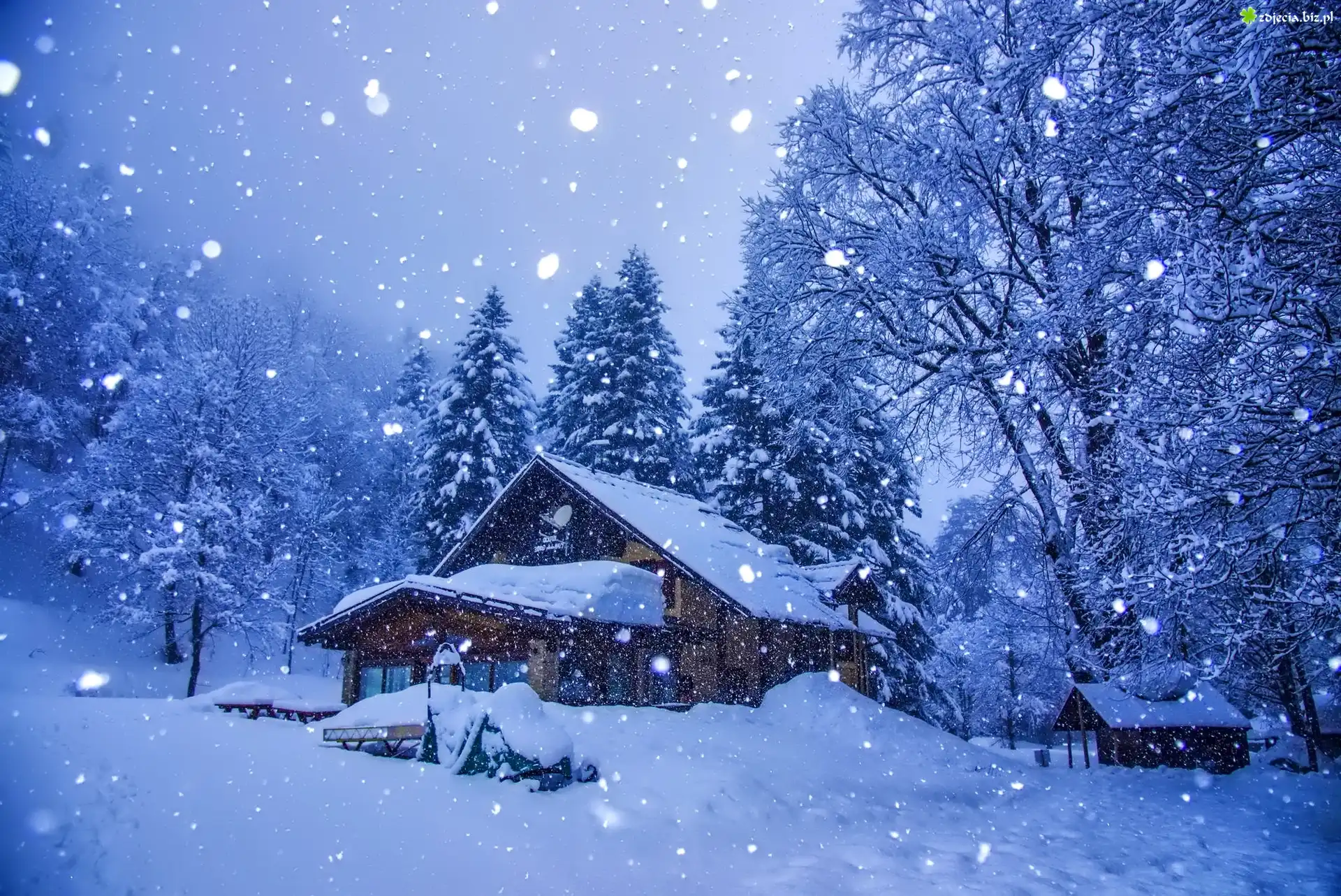 Zdjęcie Zima, Śnieg, Dom, Drzewa