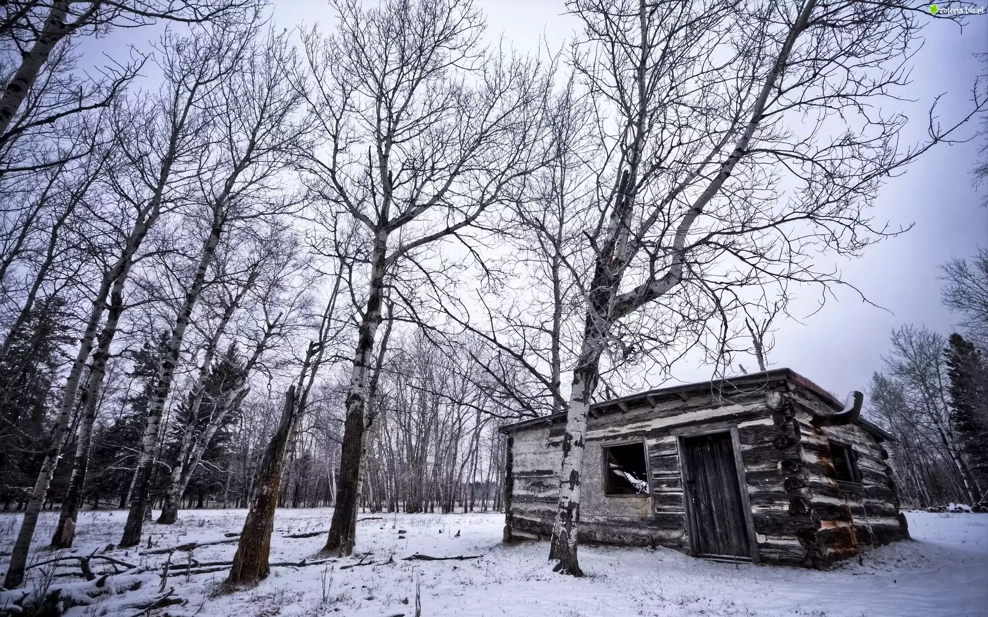Zdjęcie, Zima, Drzewa, Drewniana, Chatka