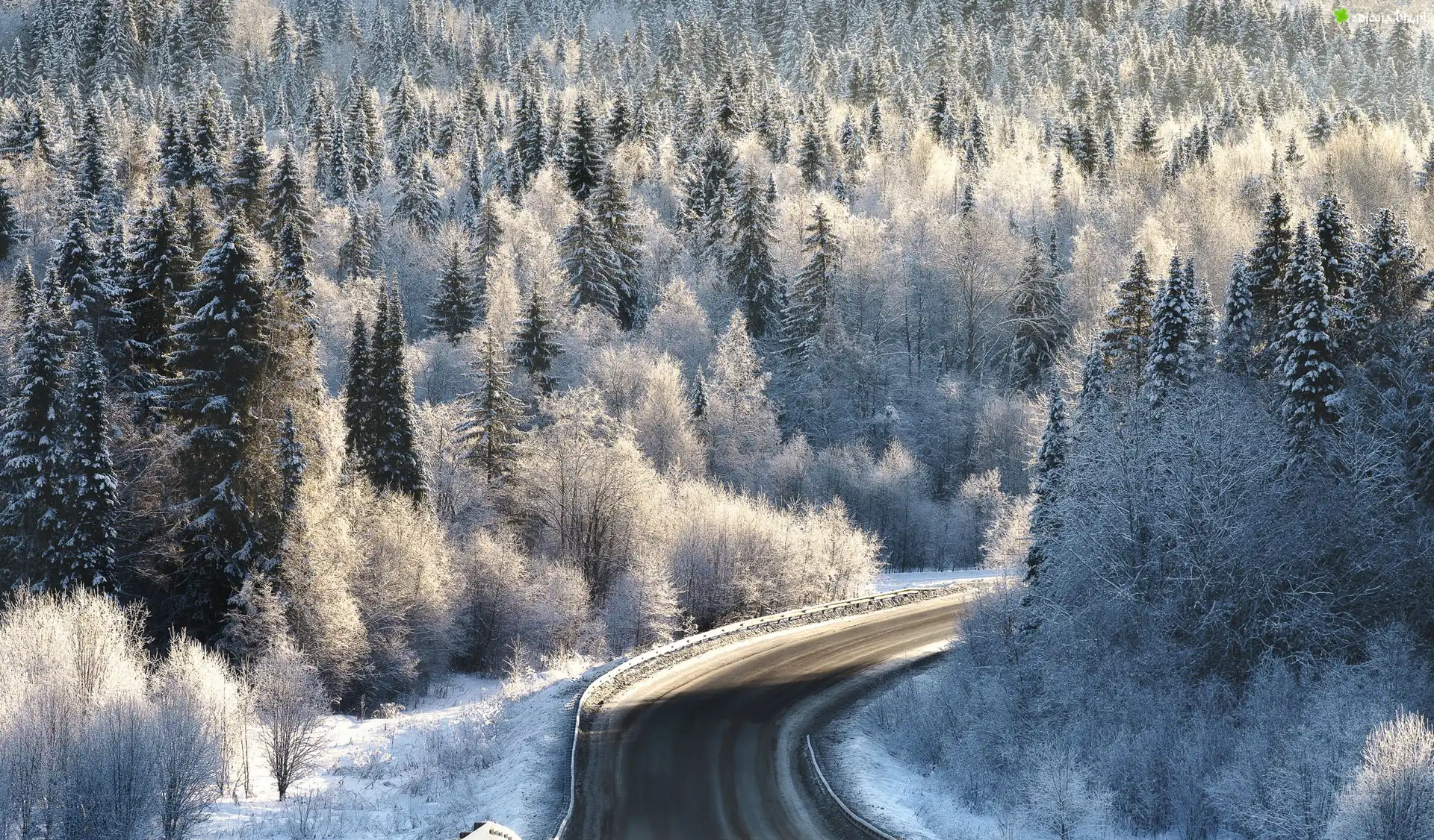 Zdjęcie Zima, Las, Drzewa, Droga, Zakręt