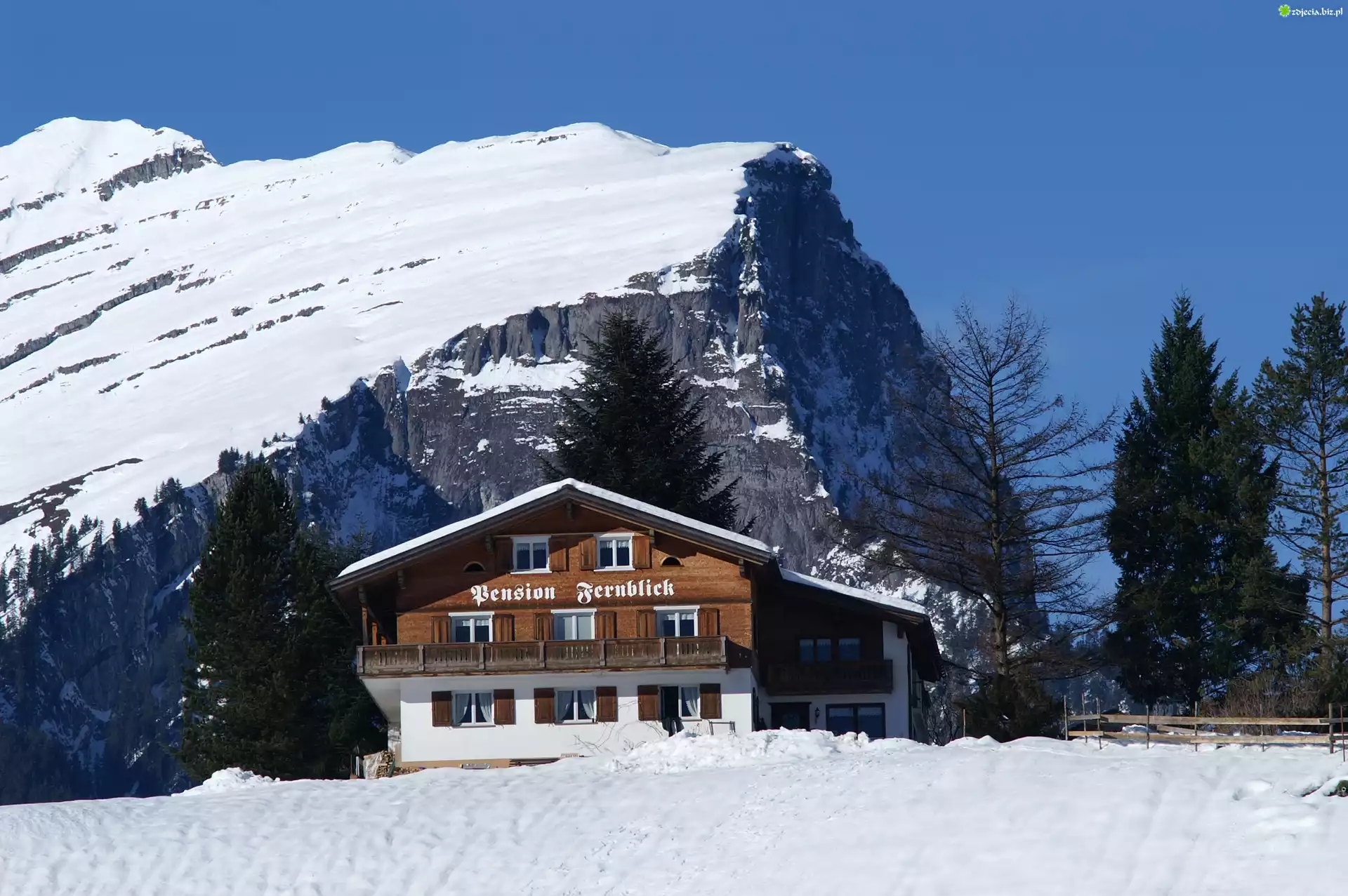 Zdjęcie Zima, Pensjonat, Góra, Drzewa, Śnieg