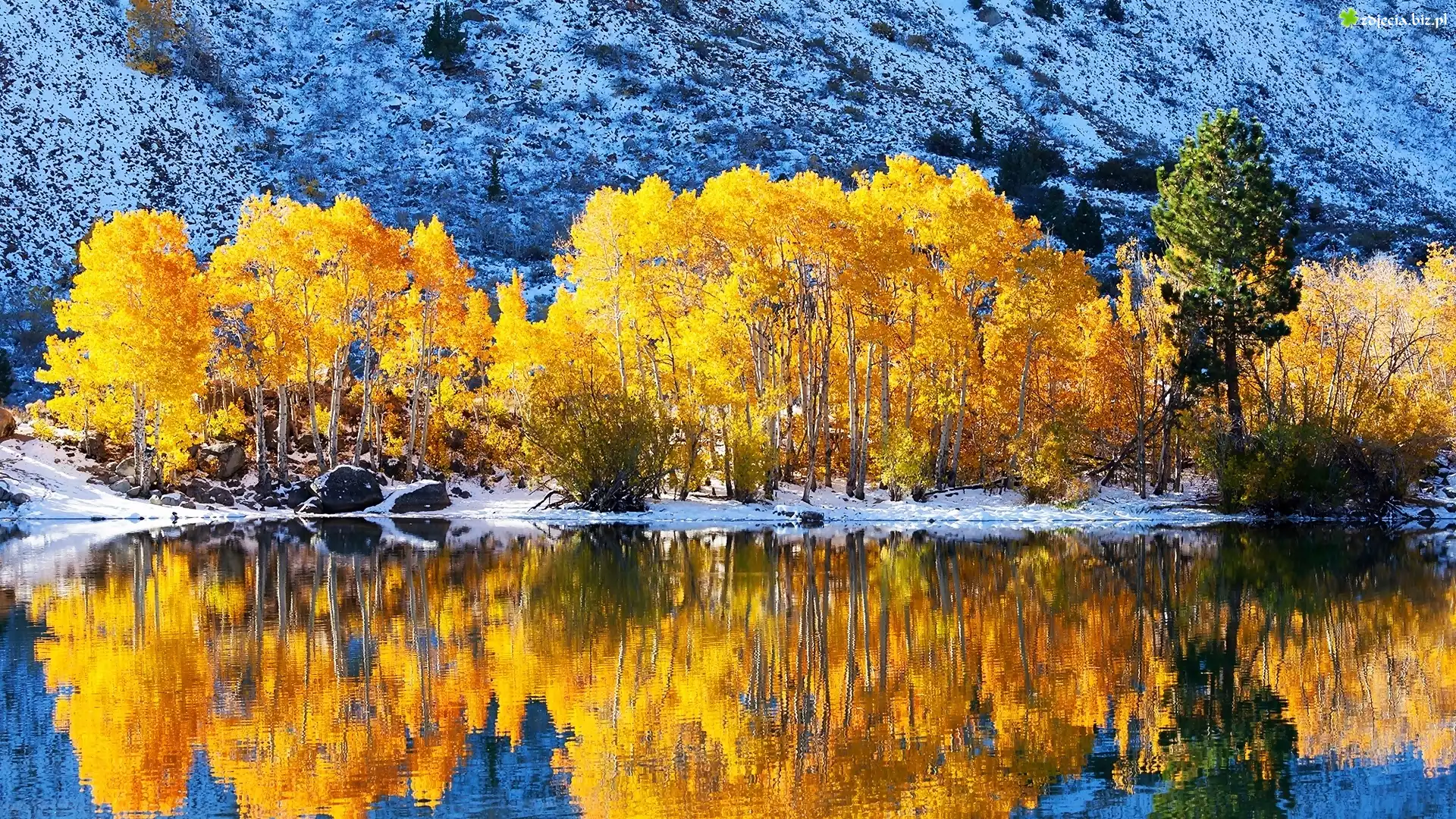 Zdjęcie Zima, Jezioro, Drzewa, Odbicie