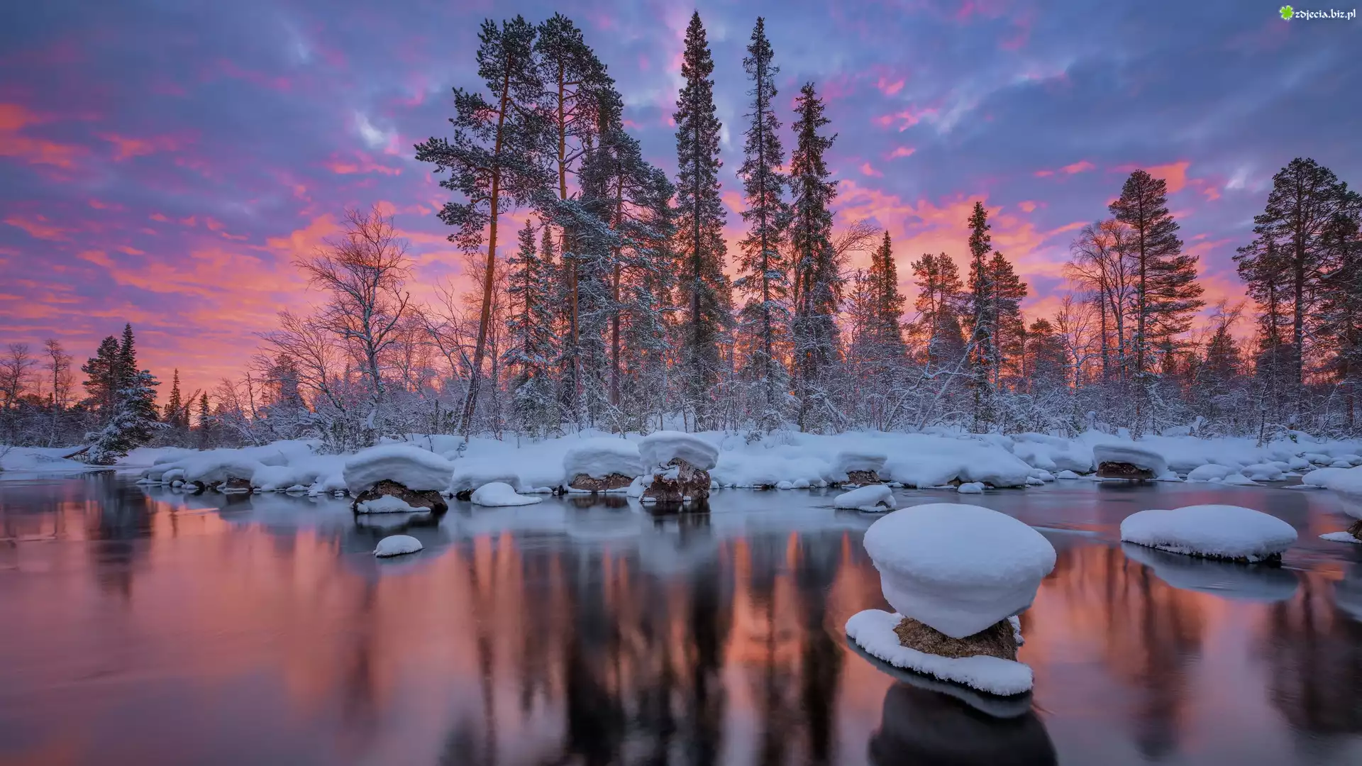 Zdjęcie Rosja, Półwysep Kolski, Zima, Jezioro, Drzewa