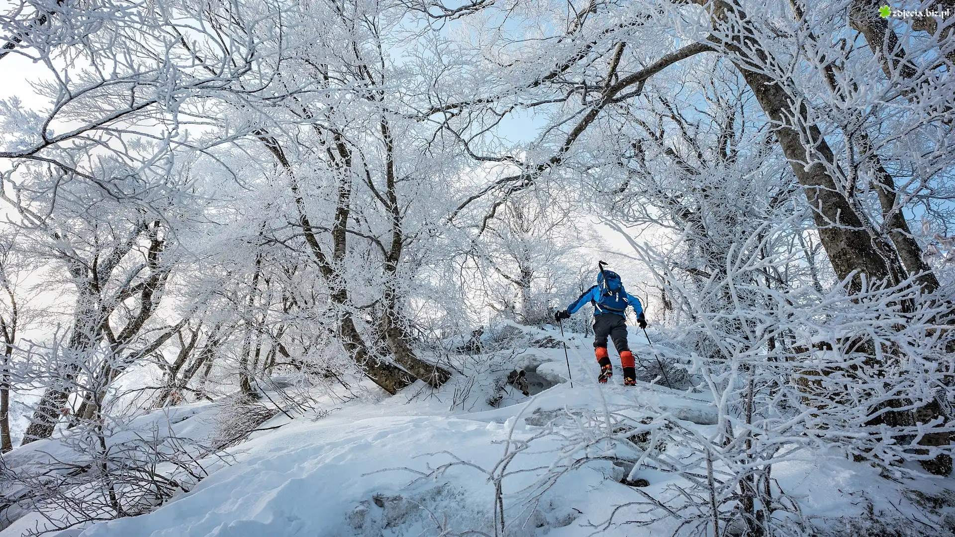 Zdjęcie Zima, Las, Drzewa, Człowiek