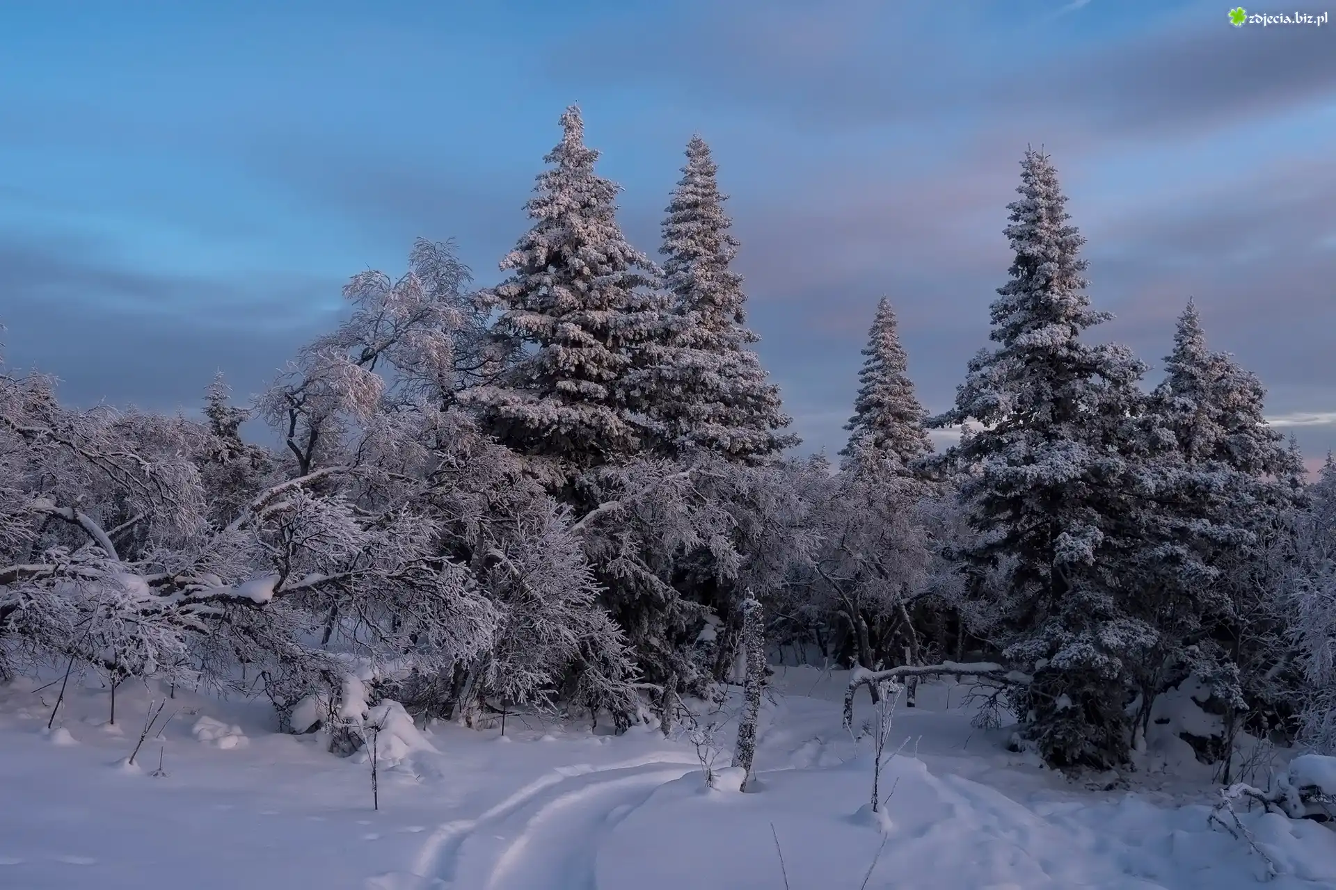 Zdjęcie Zima, Las, Drzewa, Gałęzie