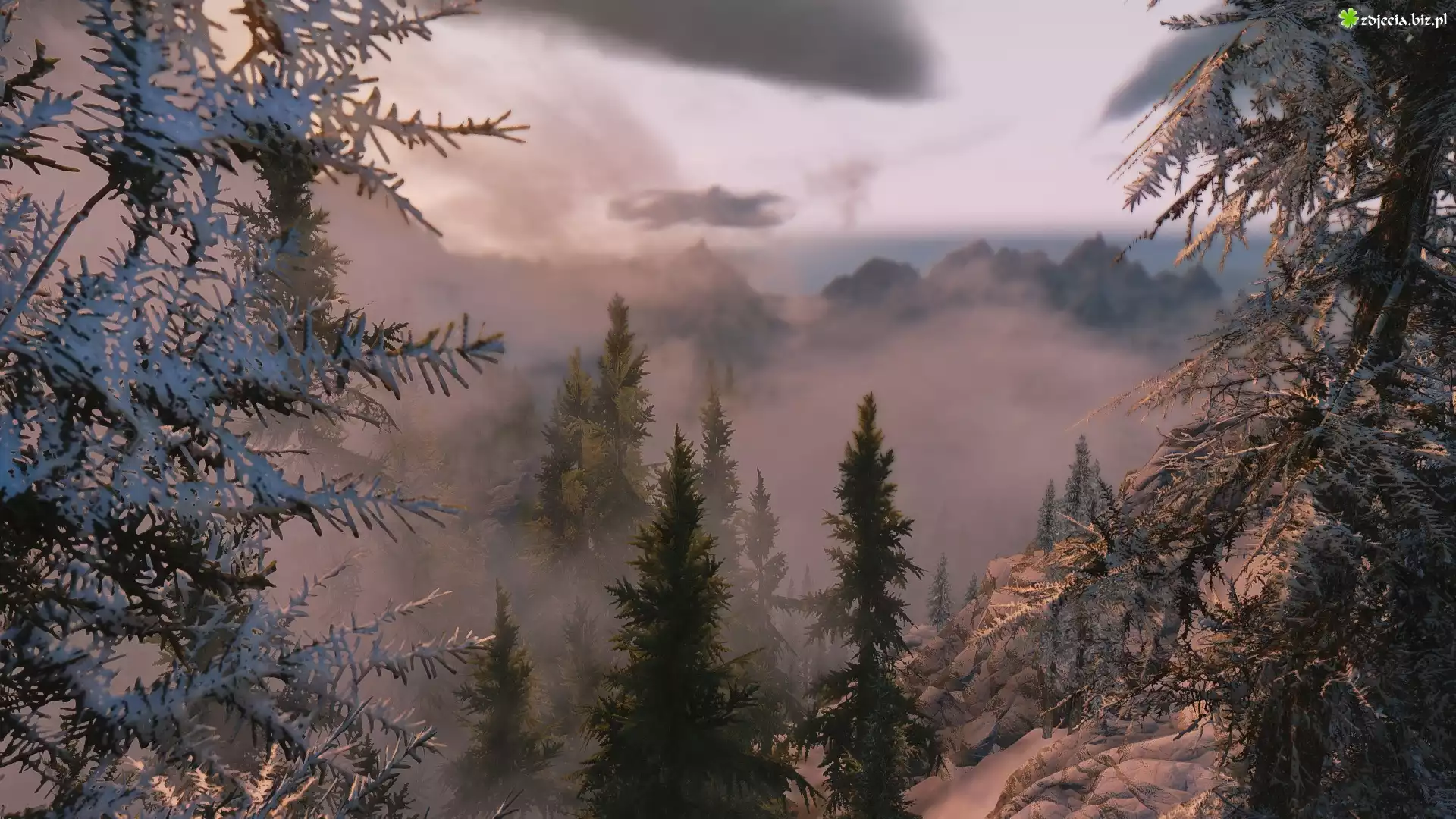 Zdjęcie Zima, Góry, Mgła, Drzewa, Śnieg