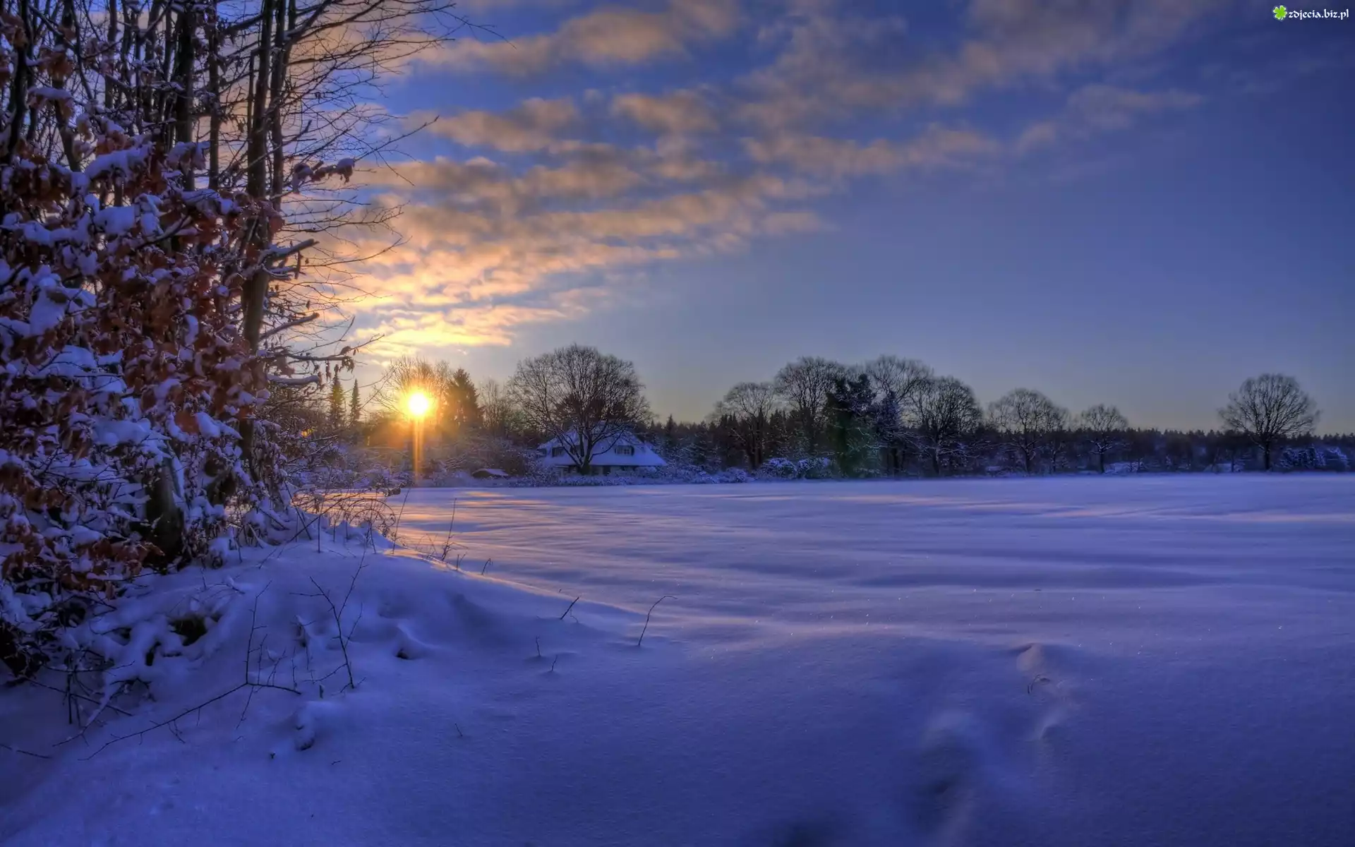 Zdjęcie Zima, Śnieg, Drzewa, Słońce