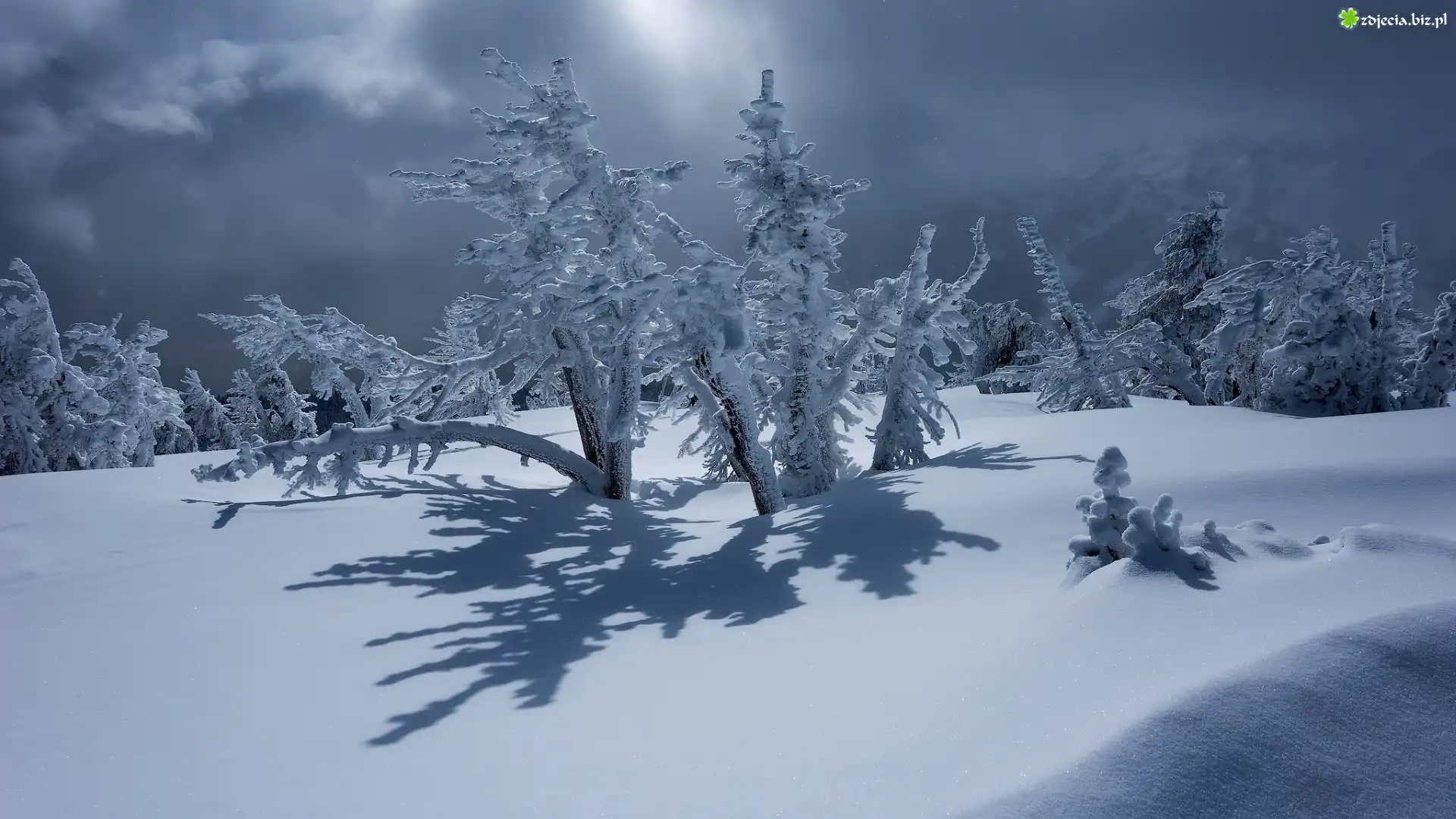 Zdjęcie Zima, Śnieg, Ośnieżone, Drzewa, Krzewy