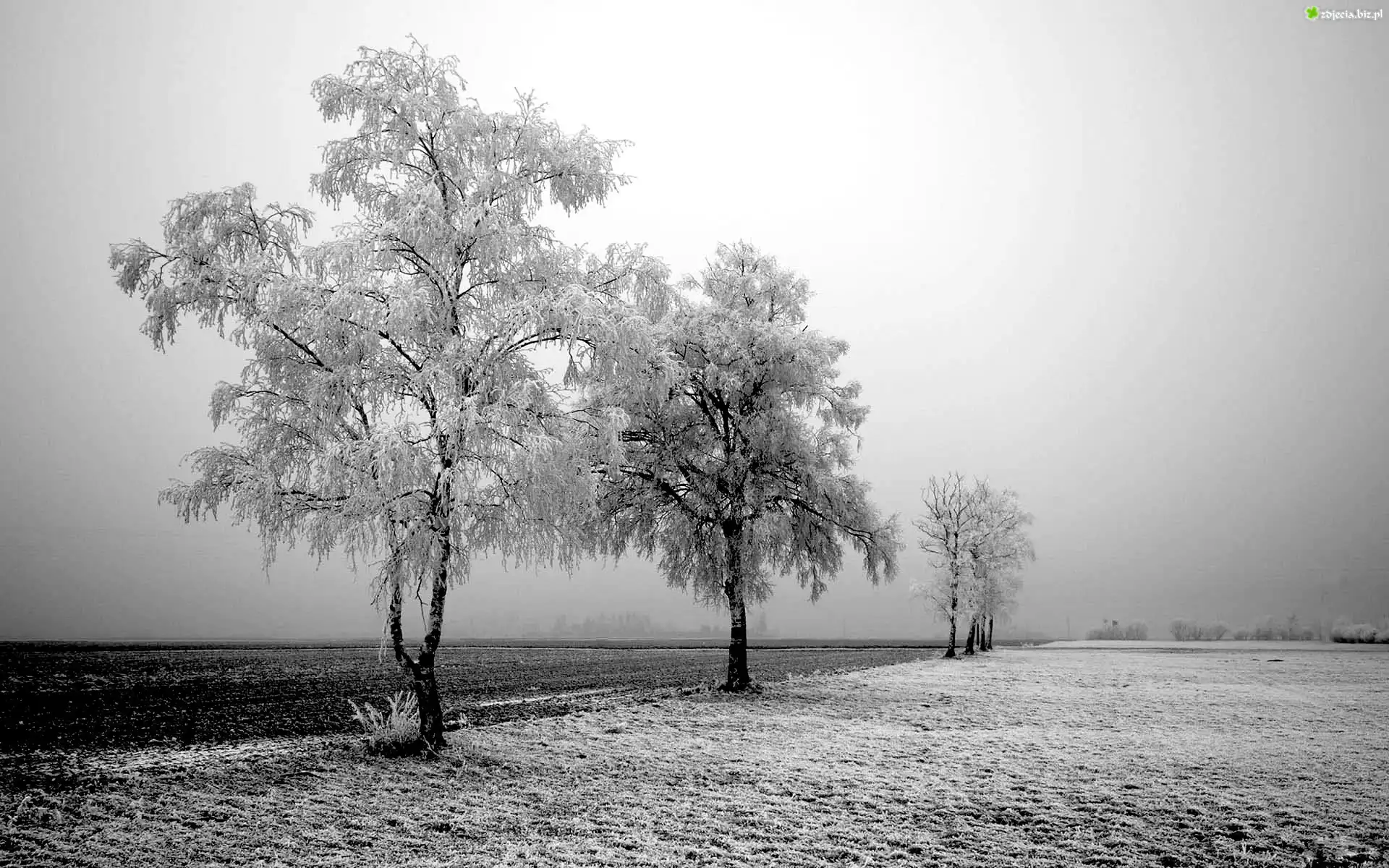Zdjęcie Zima, Oszronione, Drzewa, Pole