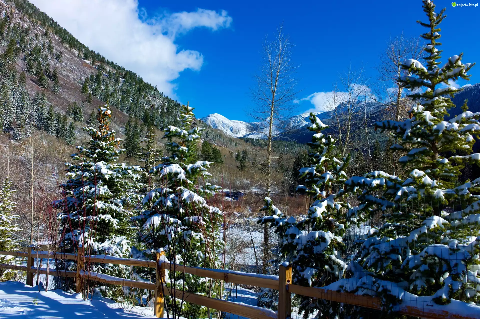 Zdjęcie Zima, Płotek, Drzewa, Góry