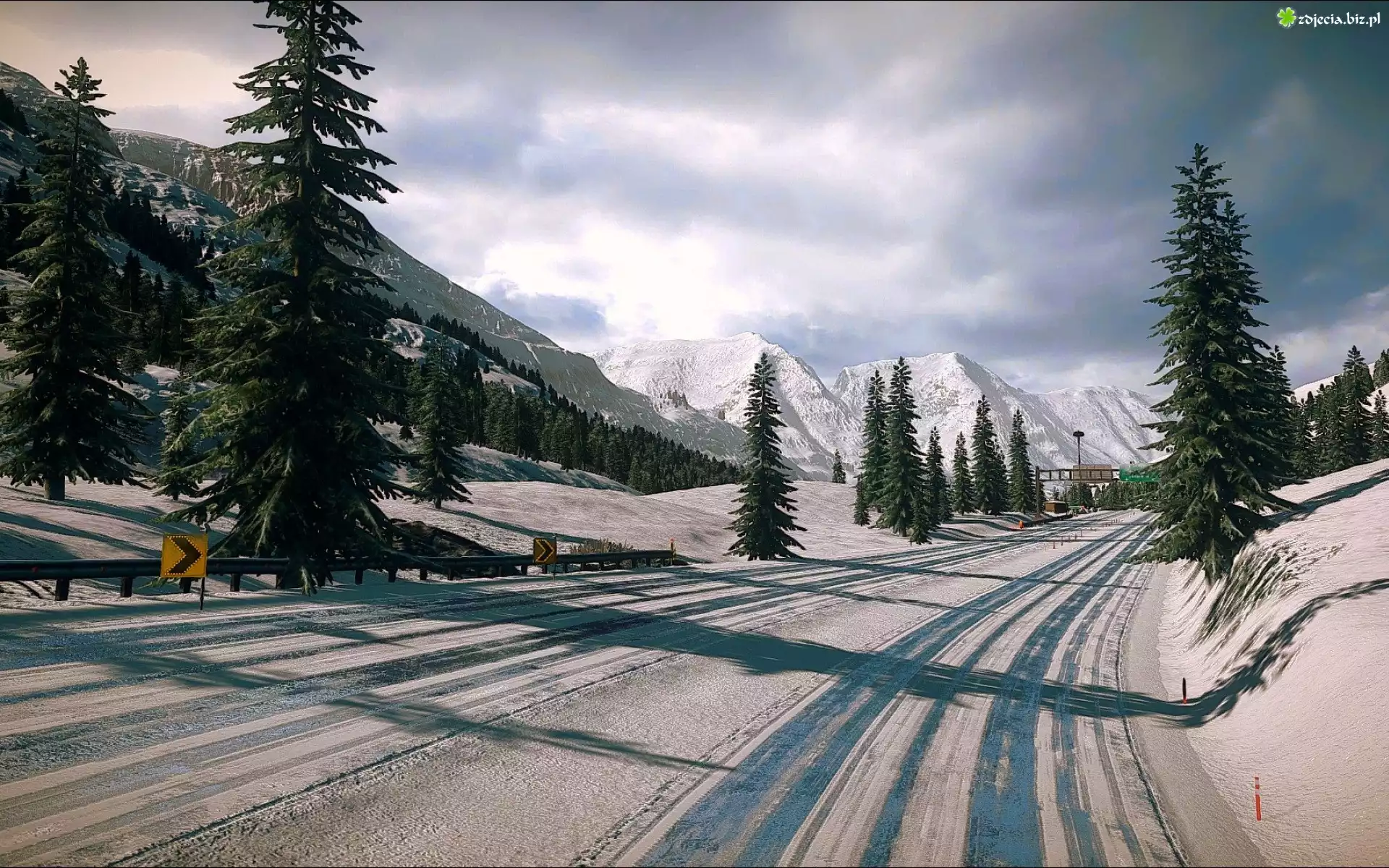 Zdjęcie Zima, Droga, Góry, Świerki