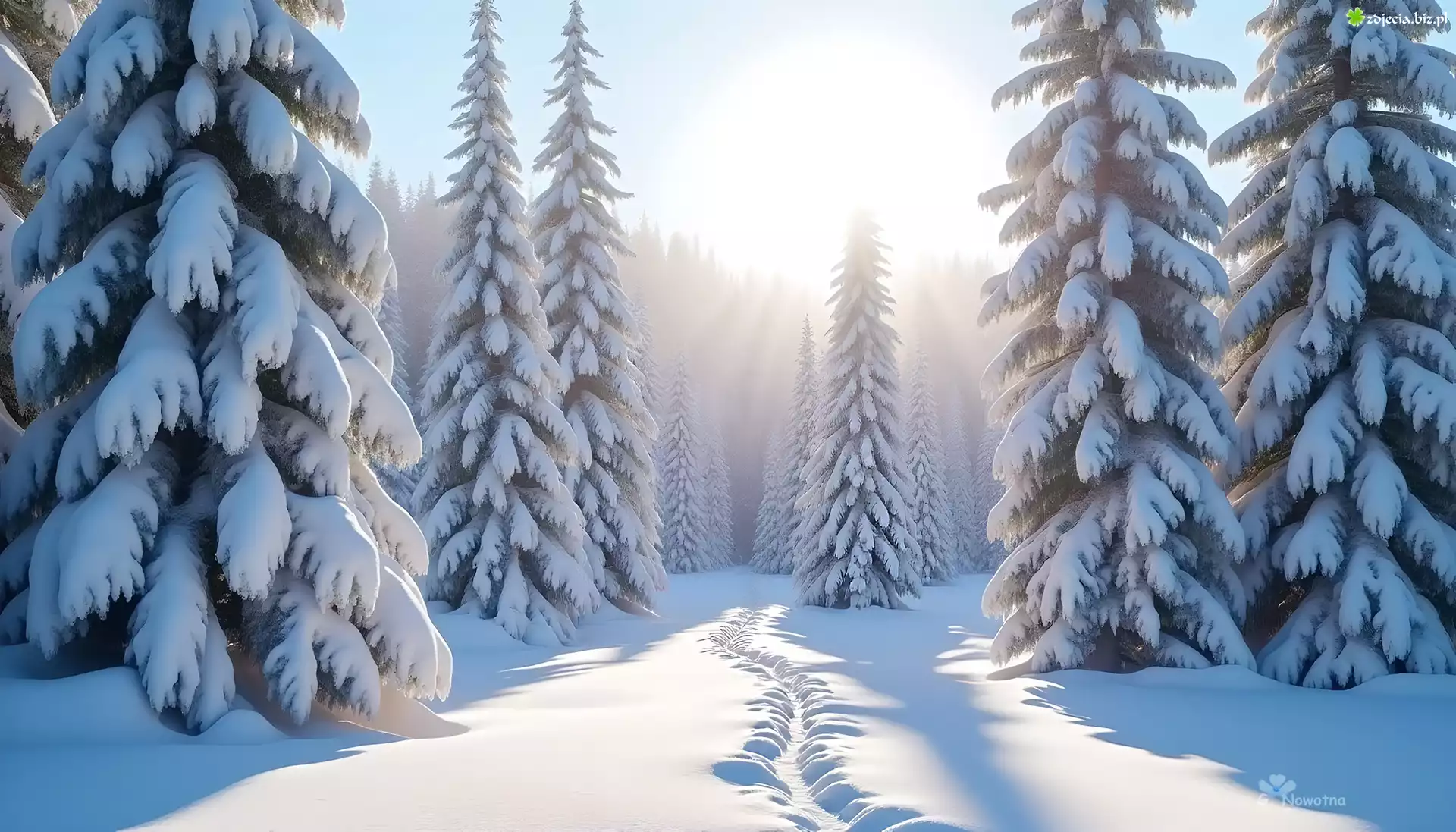Zdjęcie Ośnieżone, Drzewa, Choinki, Zima, Śnieg, Grafika