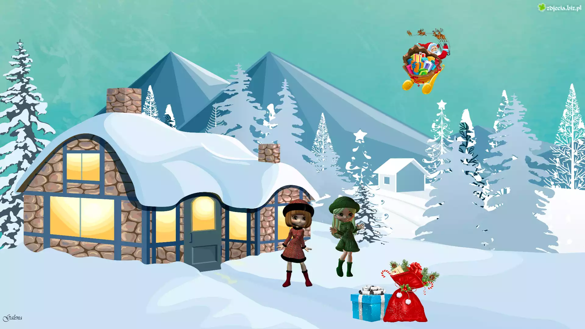 Zdjęcie Zima, Dom, Laleczki, Świąteczna, Grafika 2D